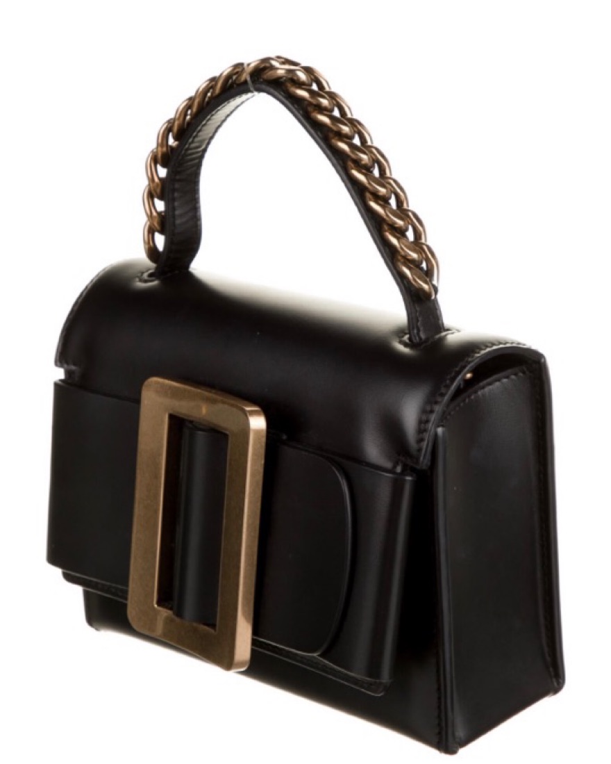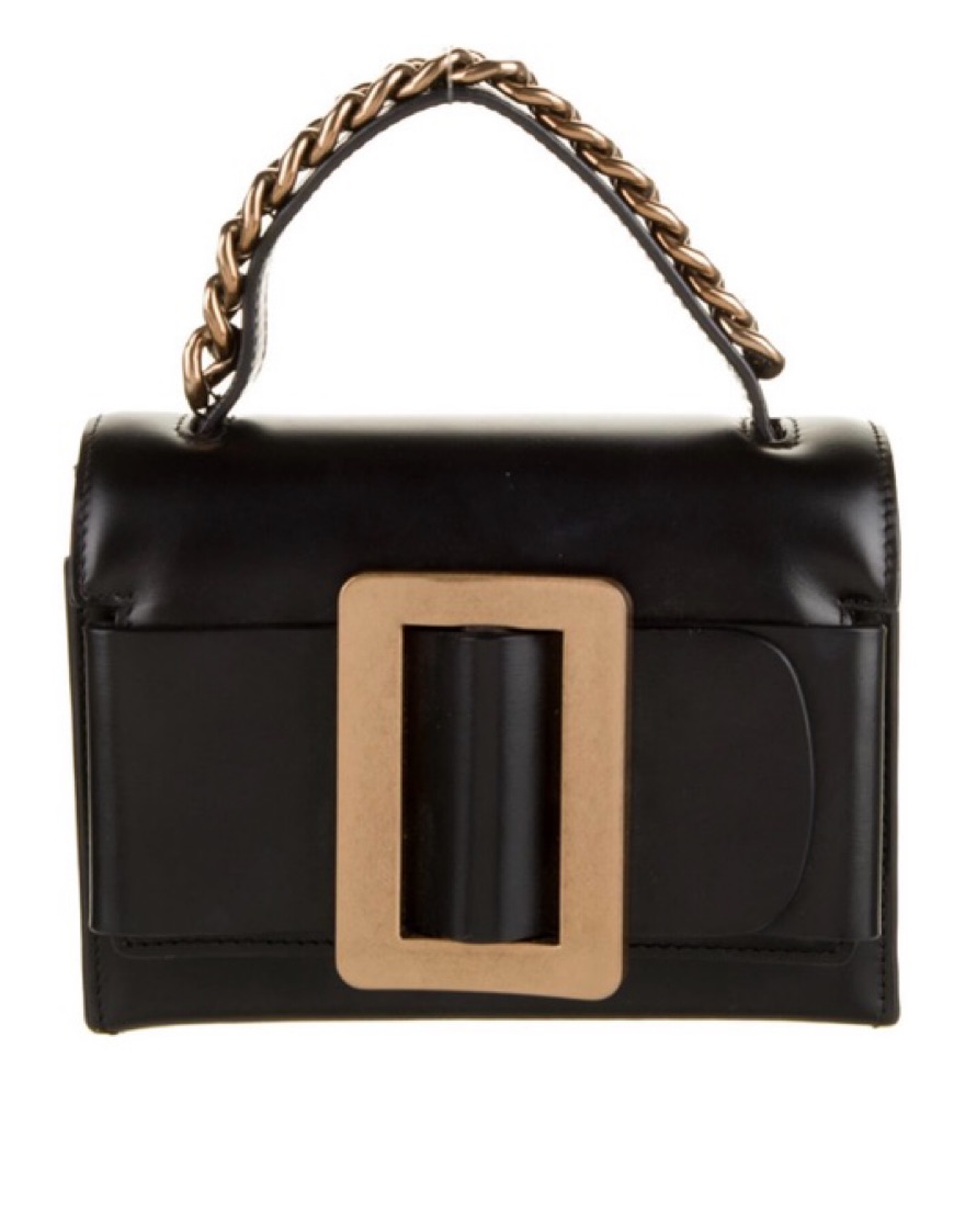 Black leather crossbody bag by BOYY model is Fred. Can be worn with top handle (as pictured) or convertible crossbody strap. Perfect for a night out!