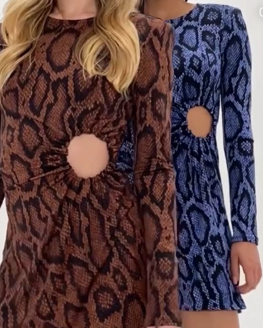This eye-catching printed dress is perfect for a night out with friends. The form-fitting silhouette and bold pattern create a chic and confident look.