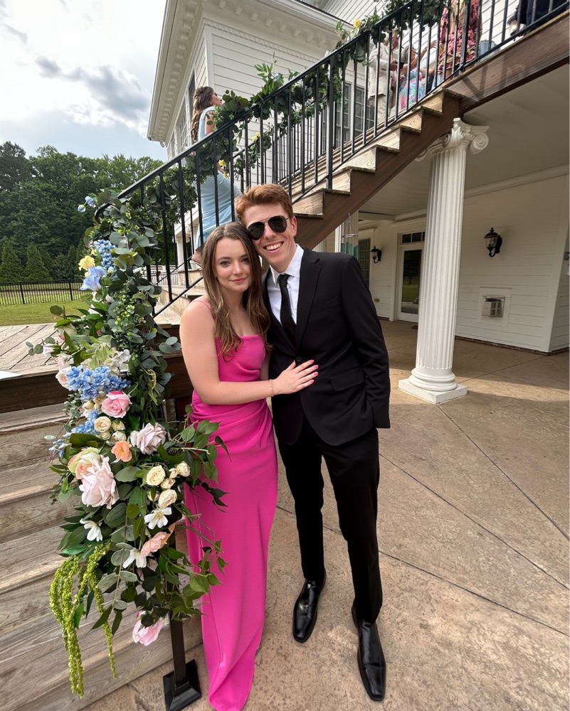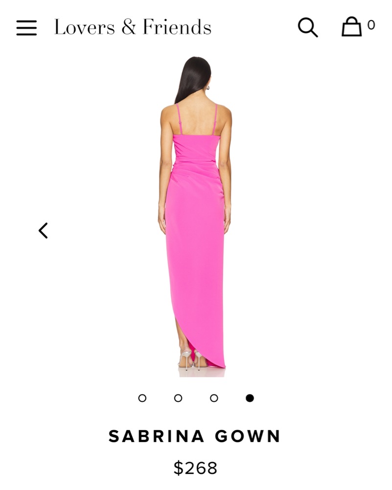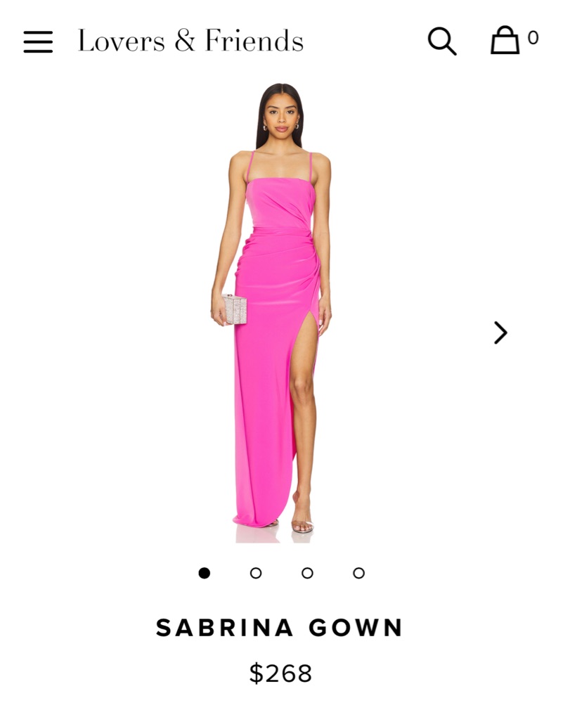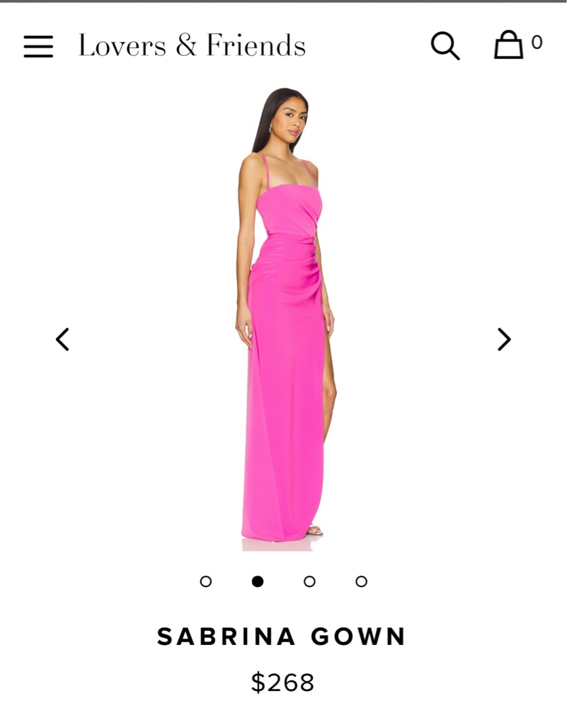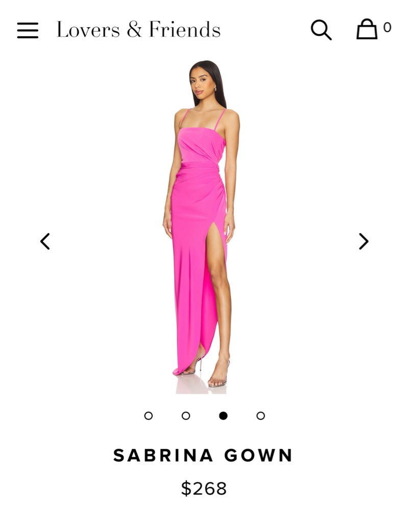 Pink gown with flattering waistline, side slit, adjustable straps in size small from Lovers and Friends