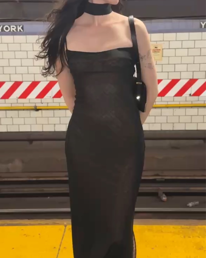 Long black mesh dress with slit, gorgeous for date night, birthday dress, NYE dress