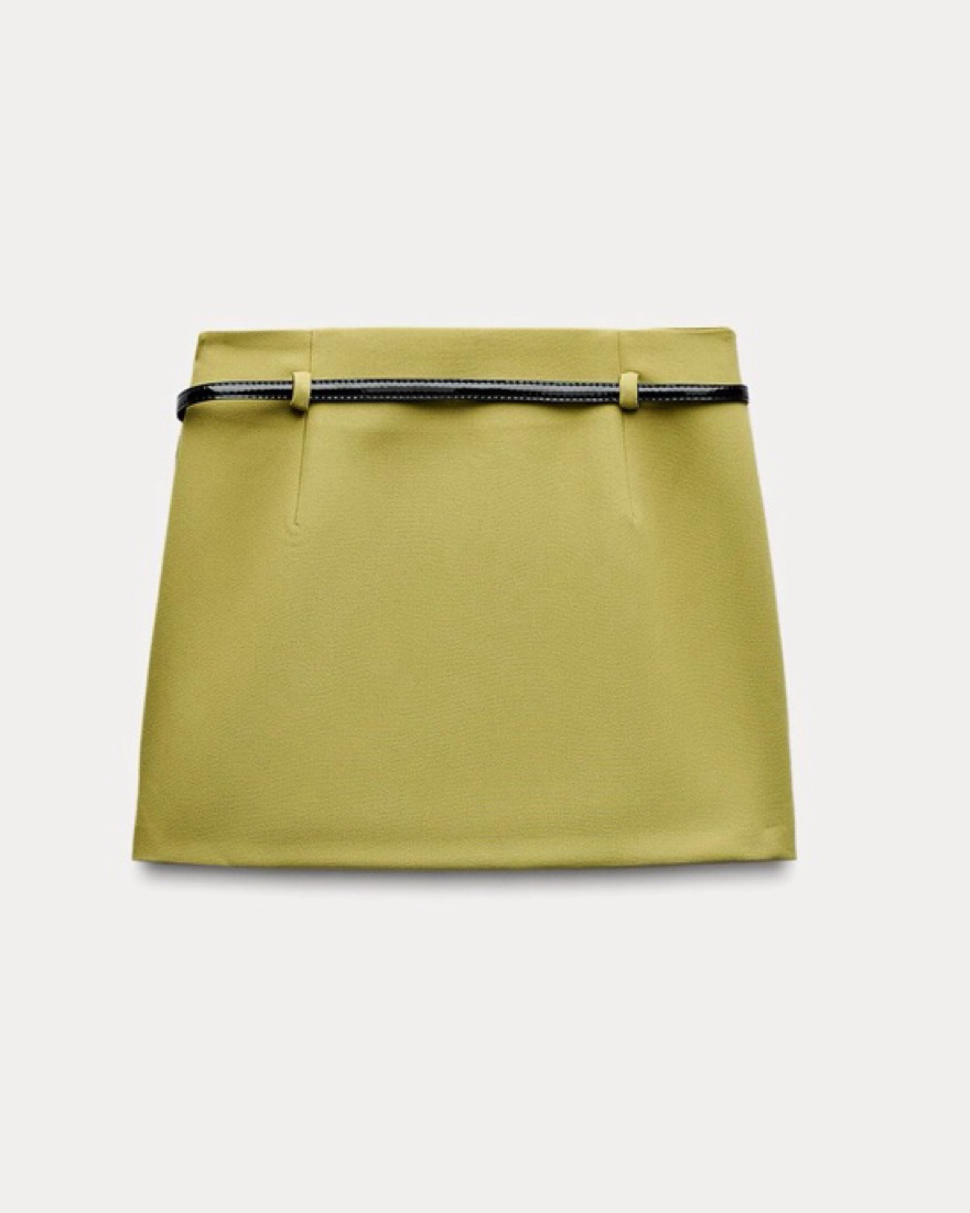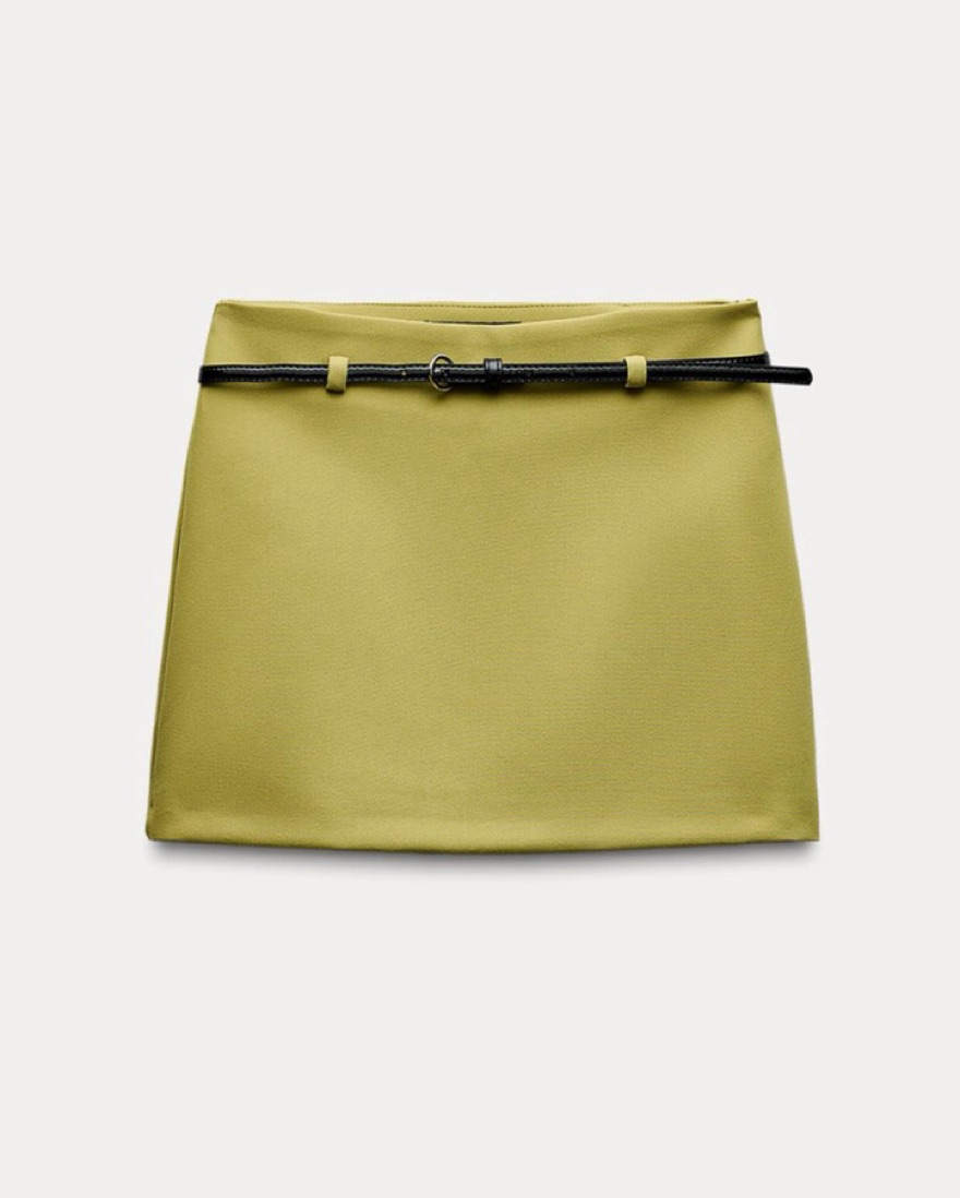ZARA Belted Mini Skirt, Pistachio Green by Zara - Pickle