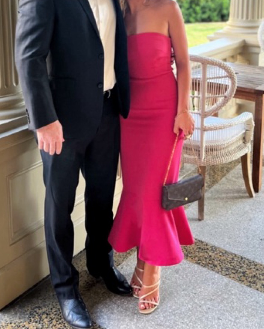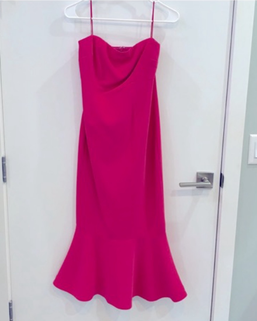 Gorgeous evening dress, I’ve worn this to black tie events. Absolutely elegant and flattering! Excellent condition.