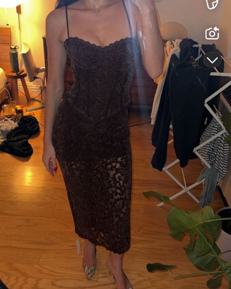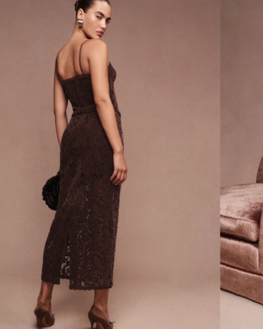 Reformation tommen set chocolate brown lace corset and skirt set. Fits like an XS. Perfect matching set for fall! House of cb realisation par diesel vintage lace vibes asta resort