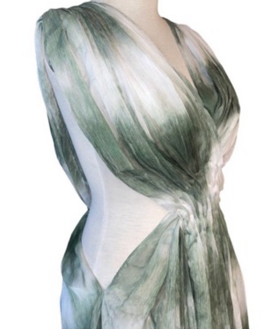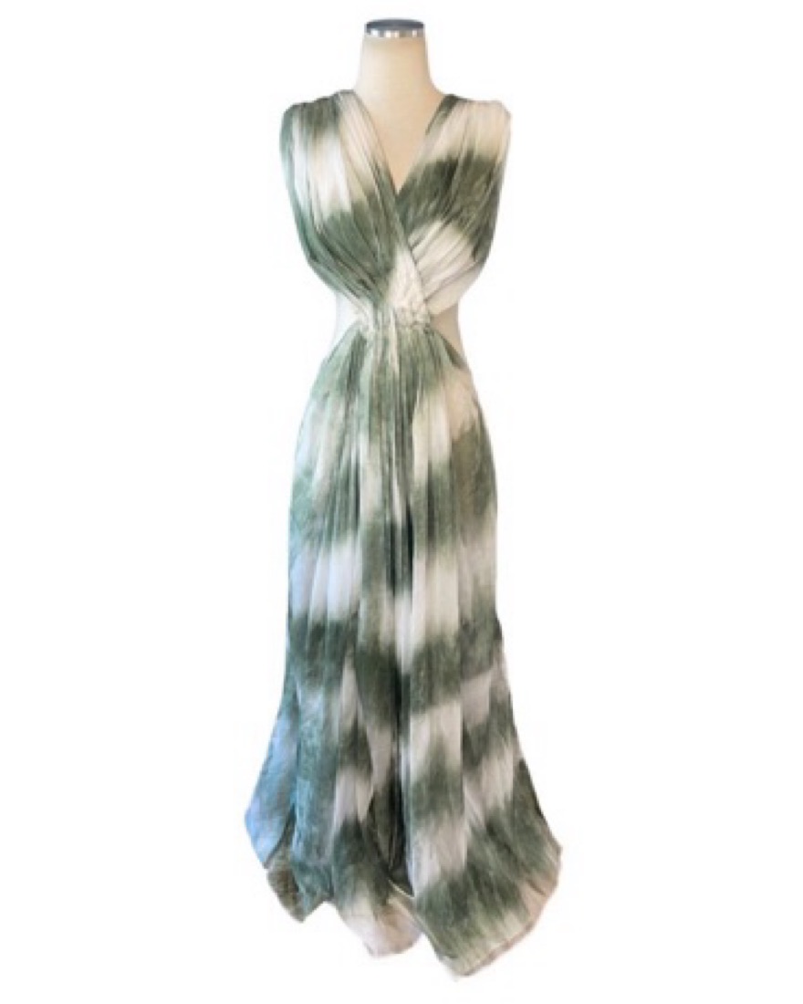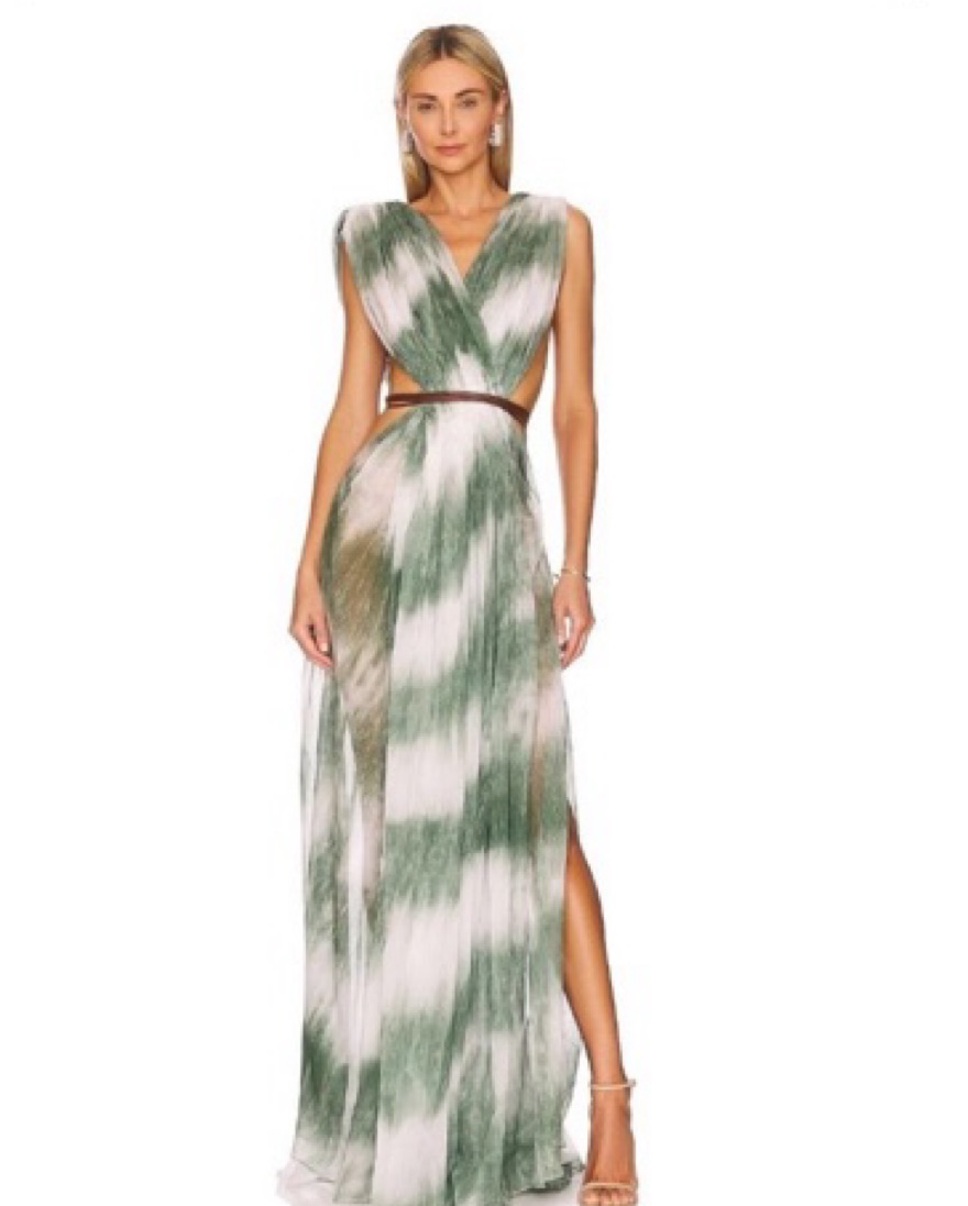 Perfect condition. It is missing the brown belt. You could die your own belt around it as i dont think the brown belt even particularly goes with the dress. Its long- mighht drag on someone shorter