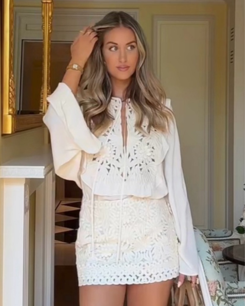 H&M Floral Croche Mini Skirt Edition in cream. Such a great skirt for summer!