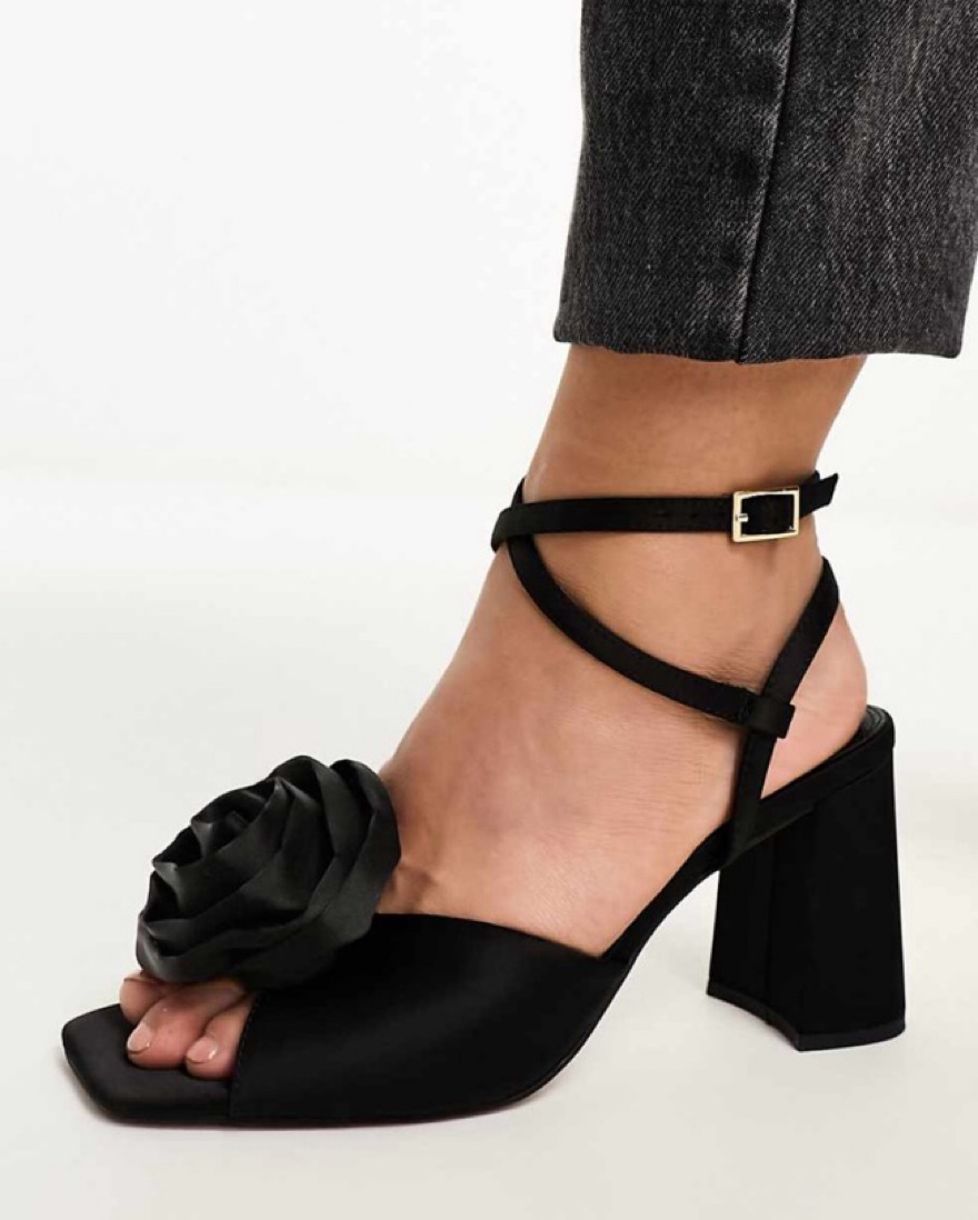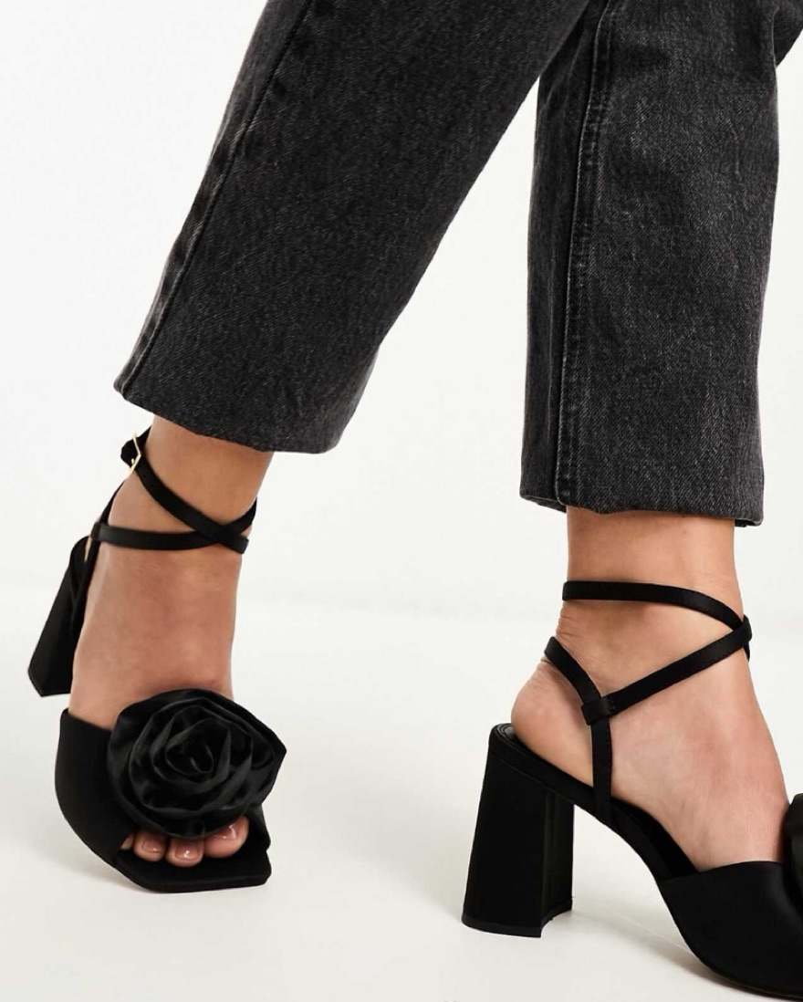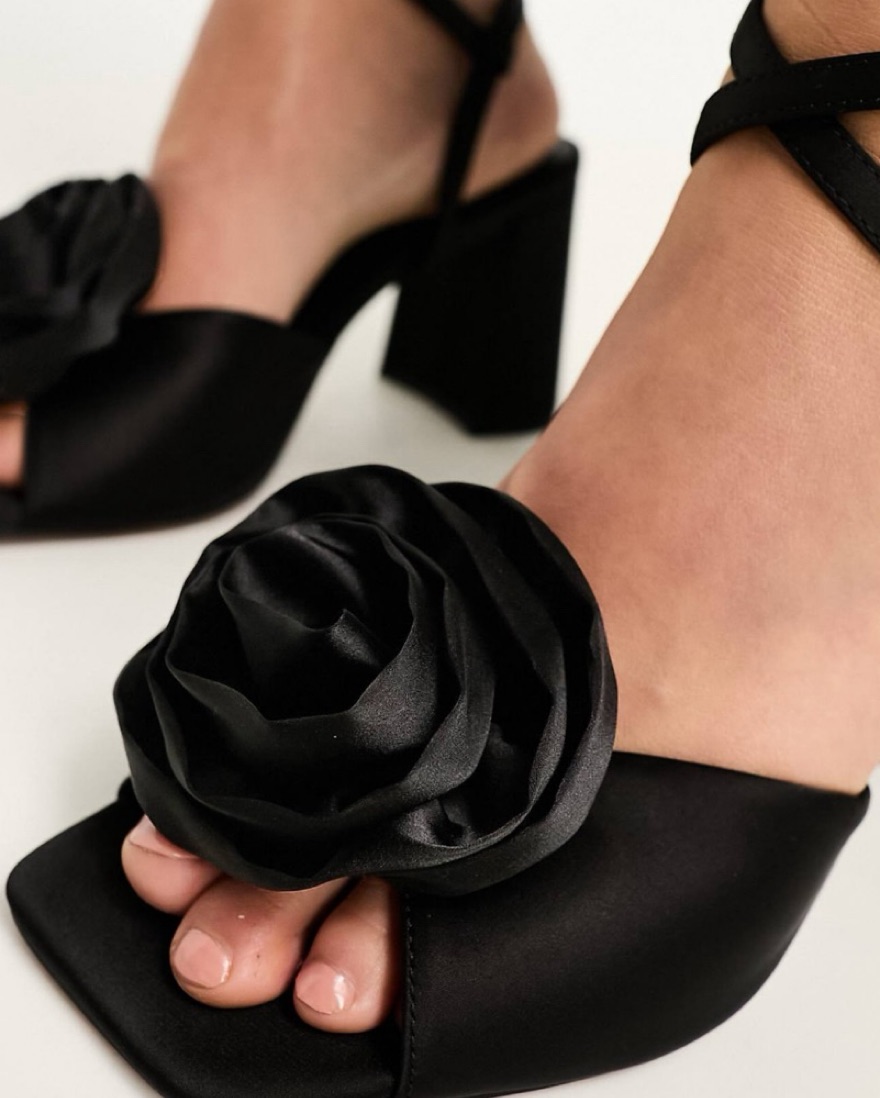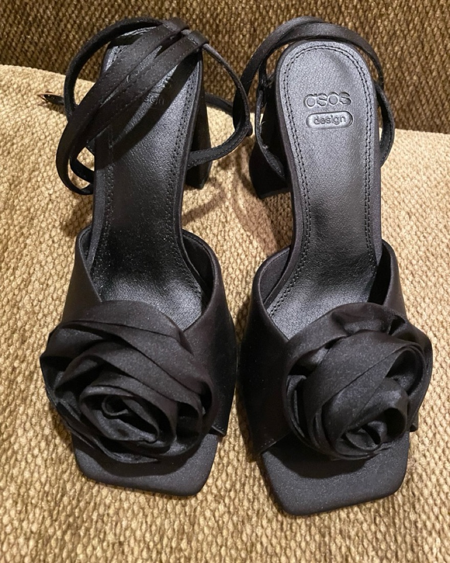 Brand New Black Satin Rose Heels by ASOS - Pickle