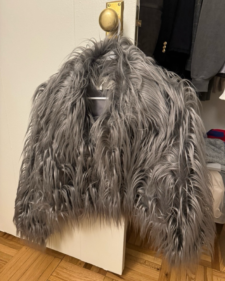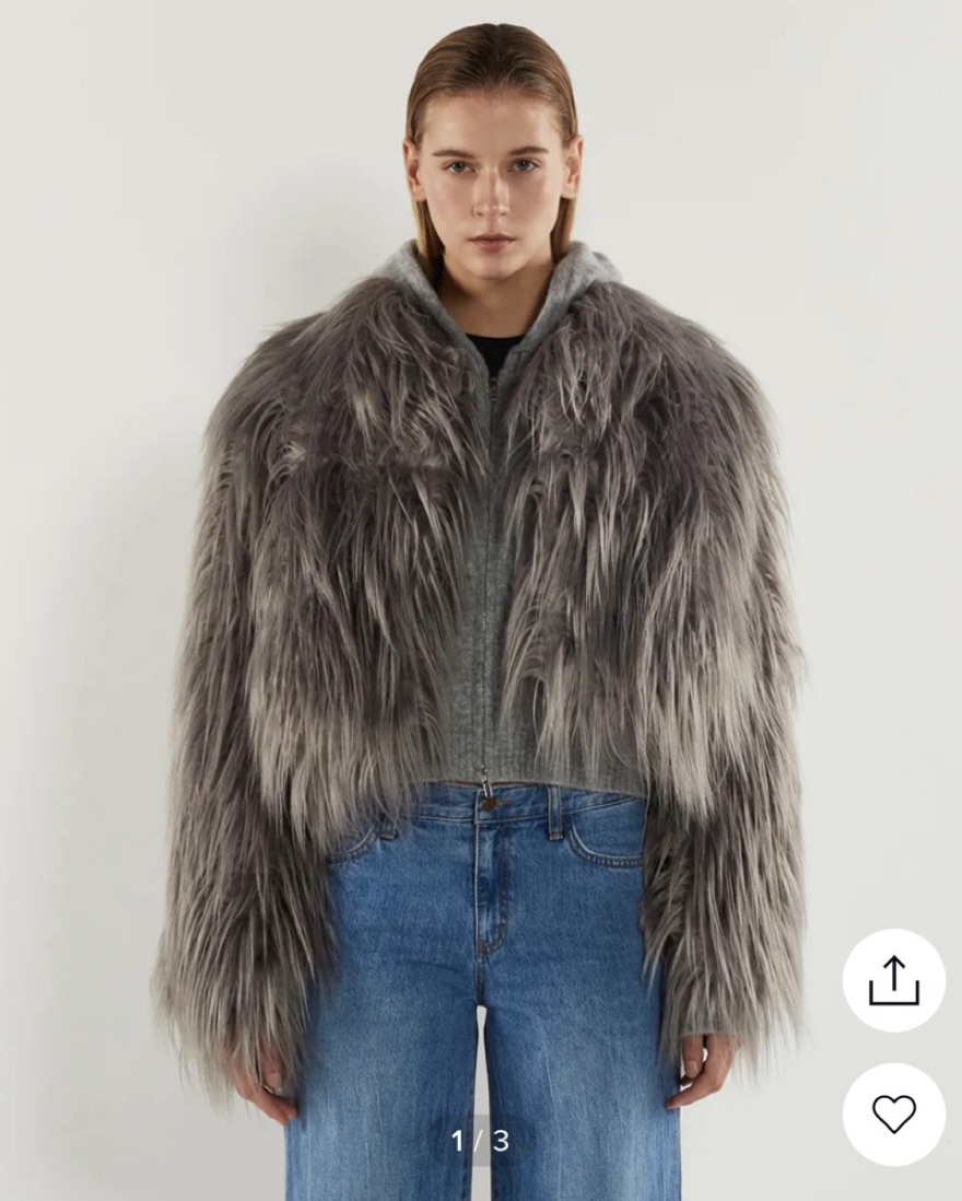 Radifi single breasted fur jacket in dark gray. Retails for $251 on Musinsa site.