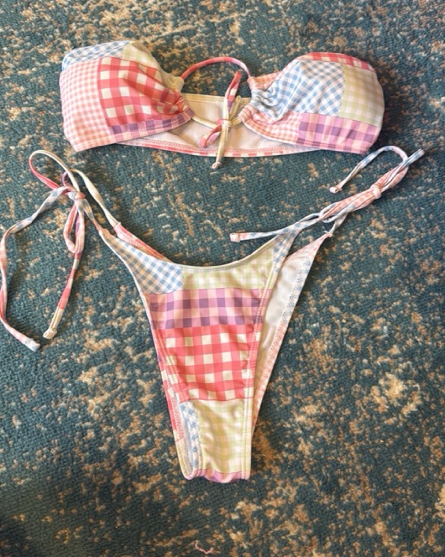 Size small plaid patchwork bikini - never been worn