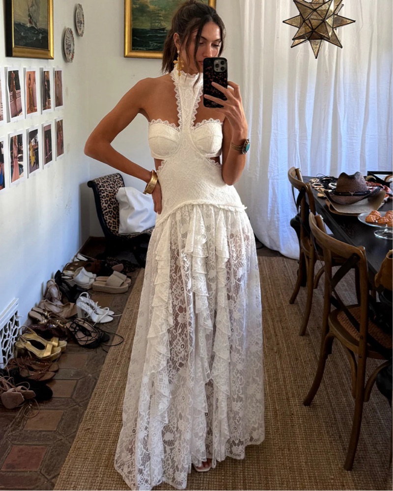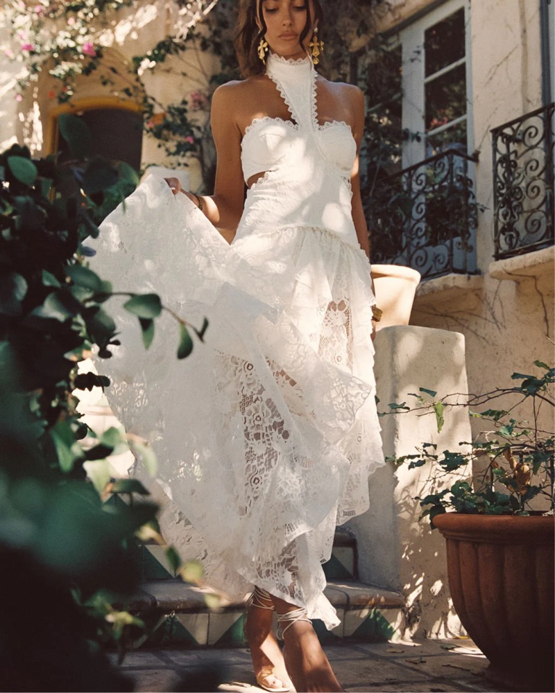 White Lace Cut Out Dress by 12 tribe - Pickle
