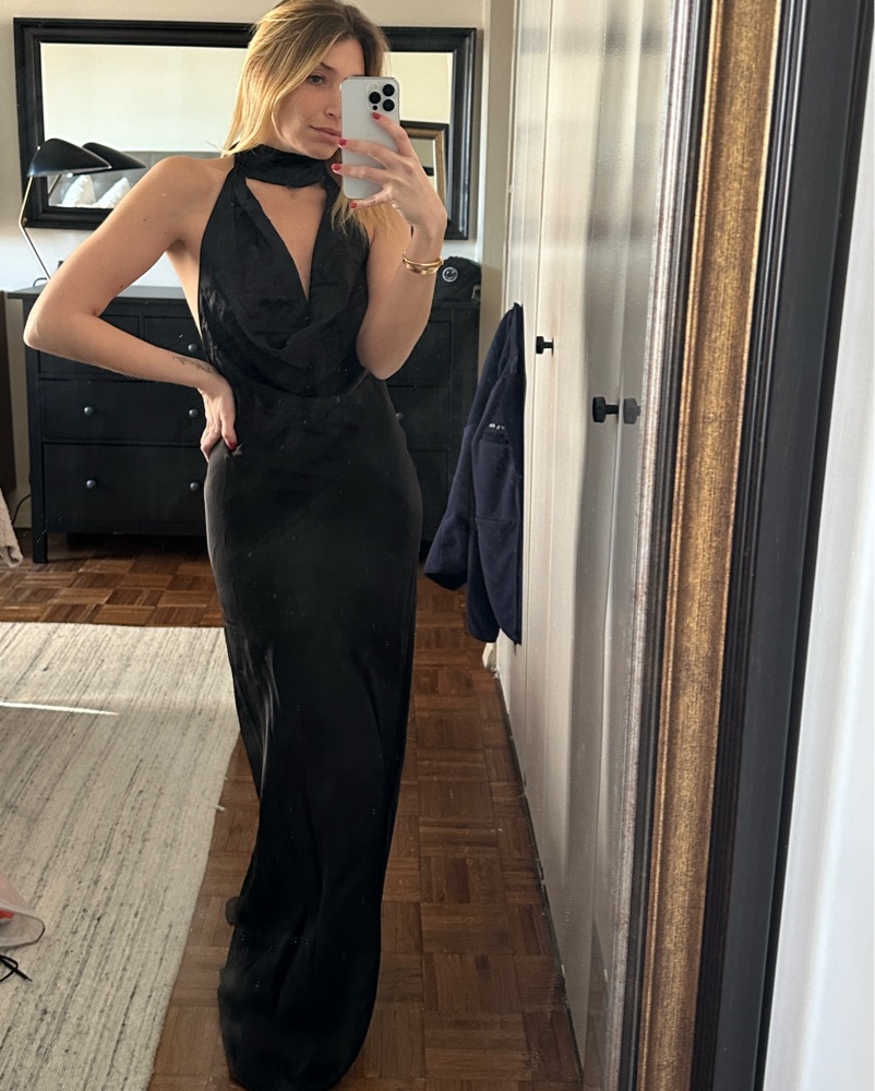 Black satin gown with open back size small