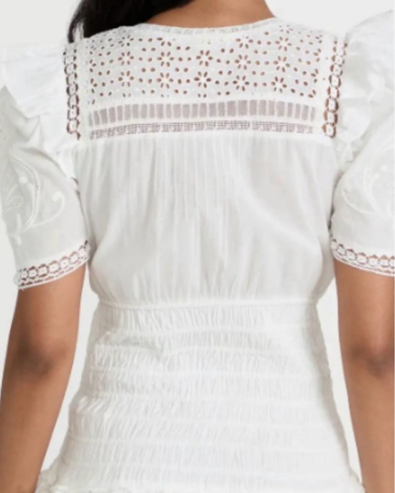 LOVESHACKFANCY Rena Embroidered Ruffle Mini Dress white mini dress, short, ruffle, summer