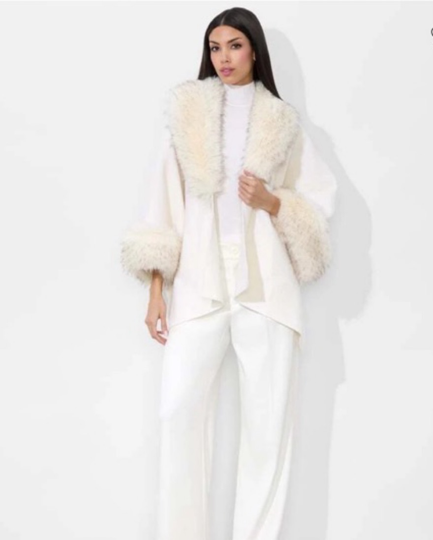 If you’re going to dress for cooler weather, you need layers that make a statement. This one includes a faux fur trim, oversized fit (so you can throw it over sweaters, too) and is crafted in 100% Italian wool.