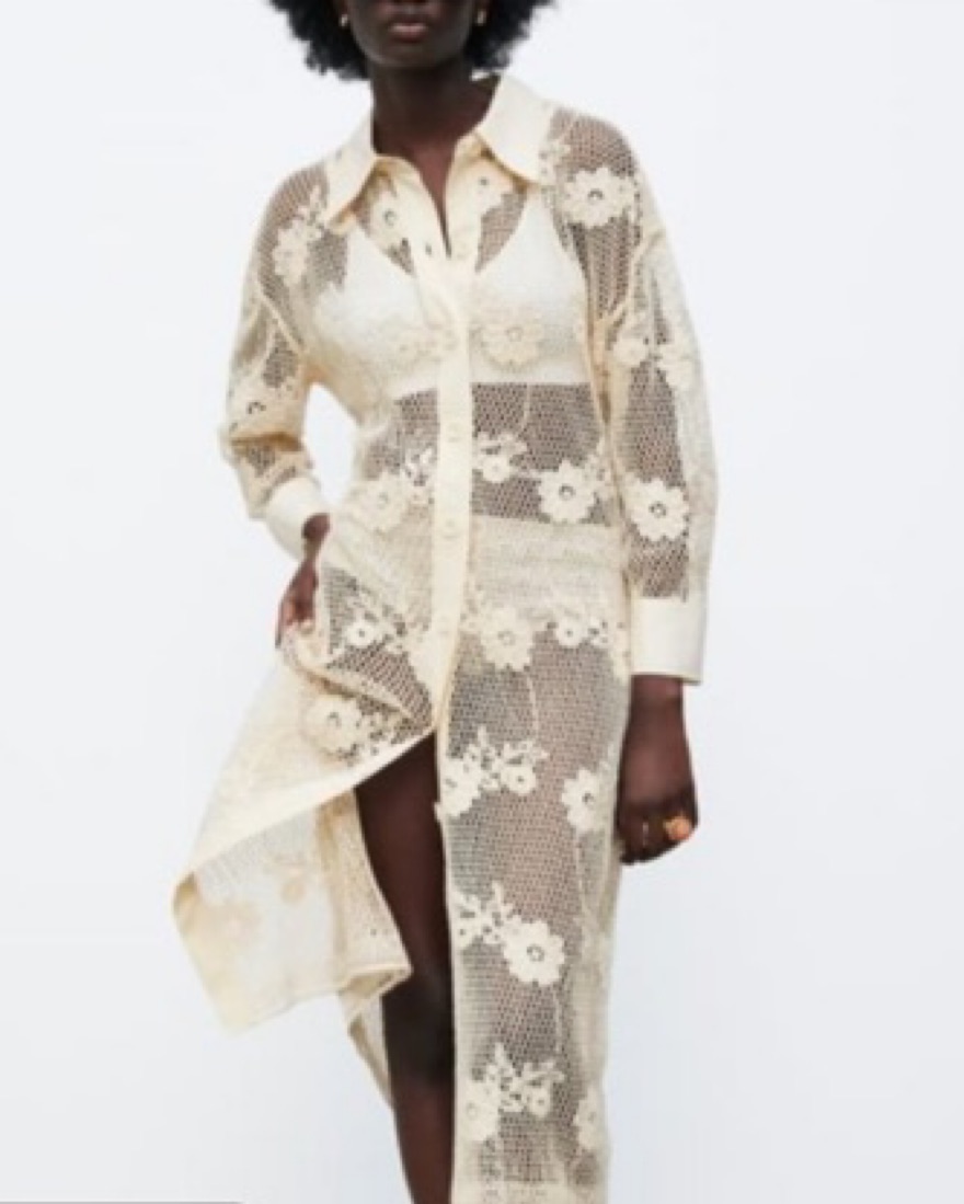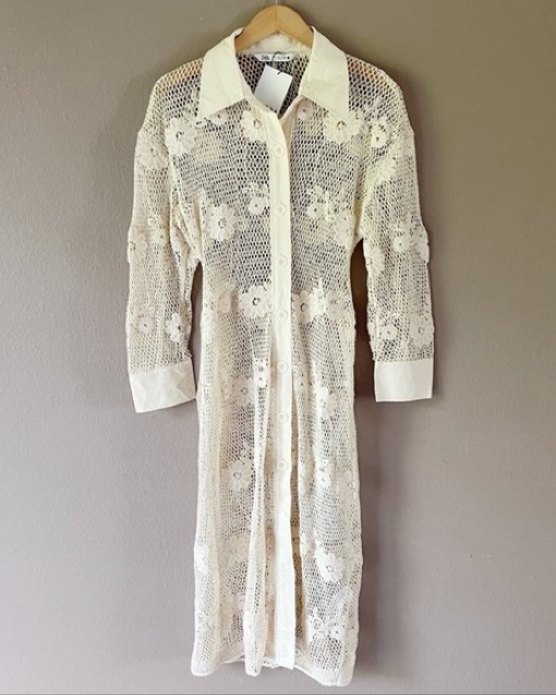 Crochet Button Down Dress/Cover Up by Zara - Pickle