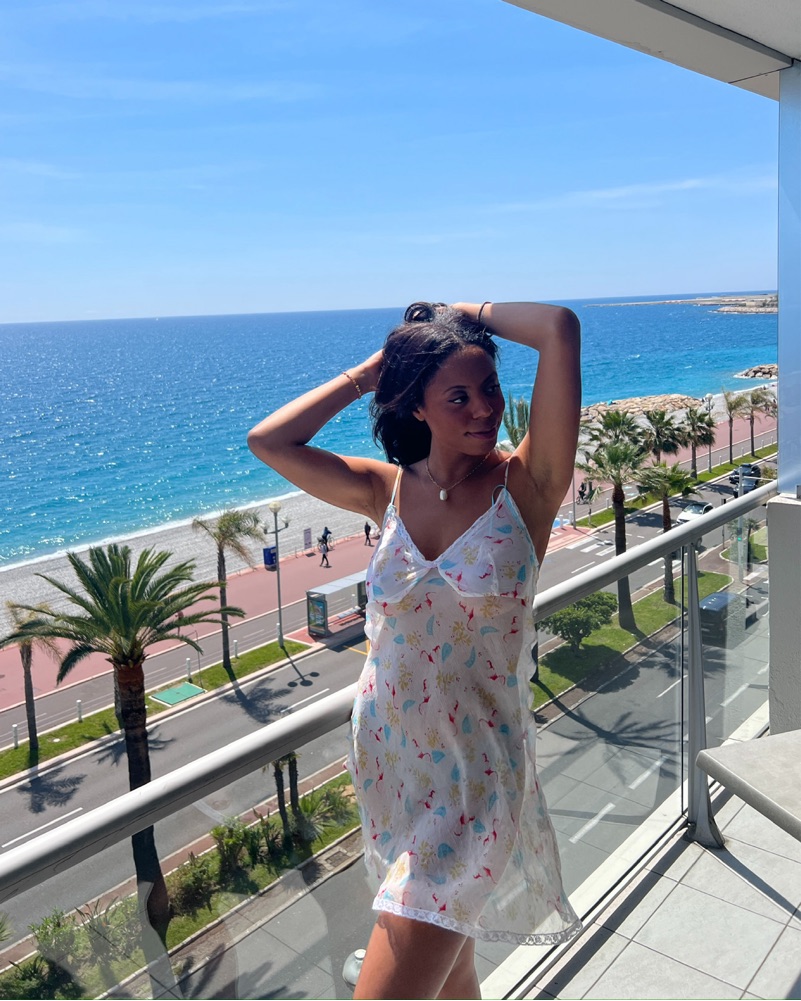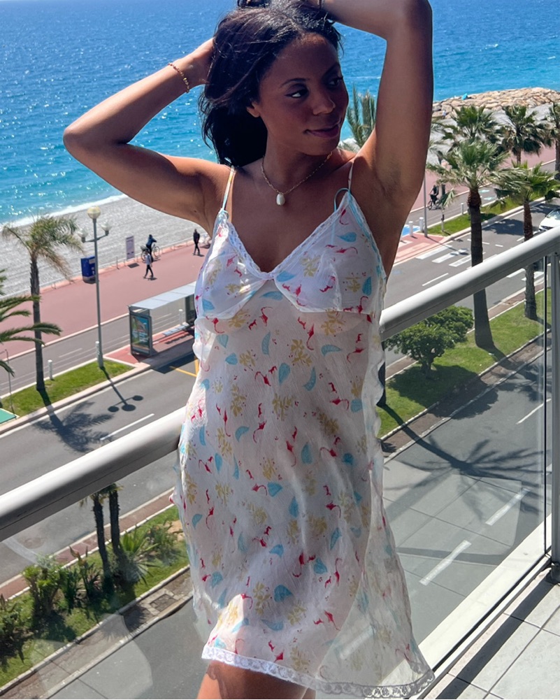 This chic floral mini dress is perfect for a summer day or night out. The vibrant print and flowing silhouette create a feminine and carefree look.