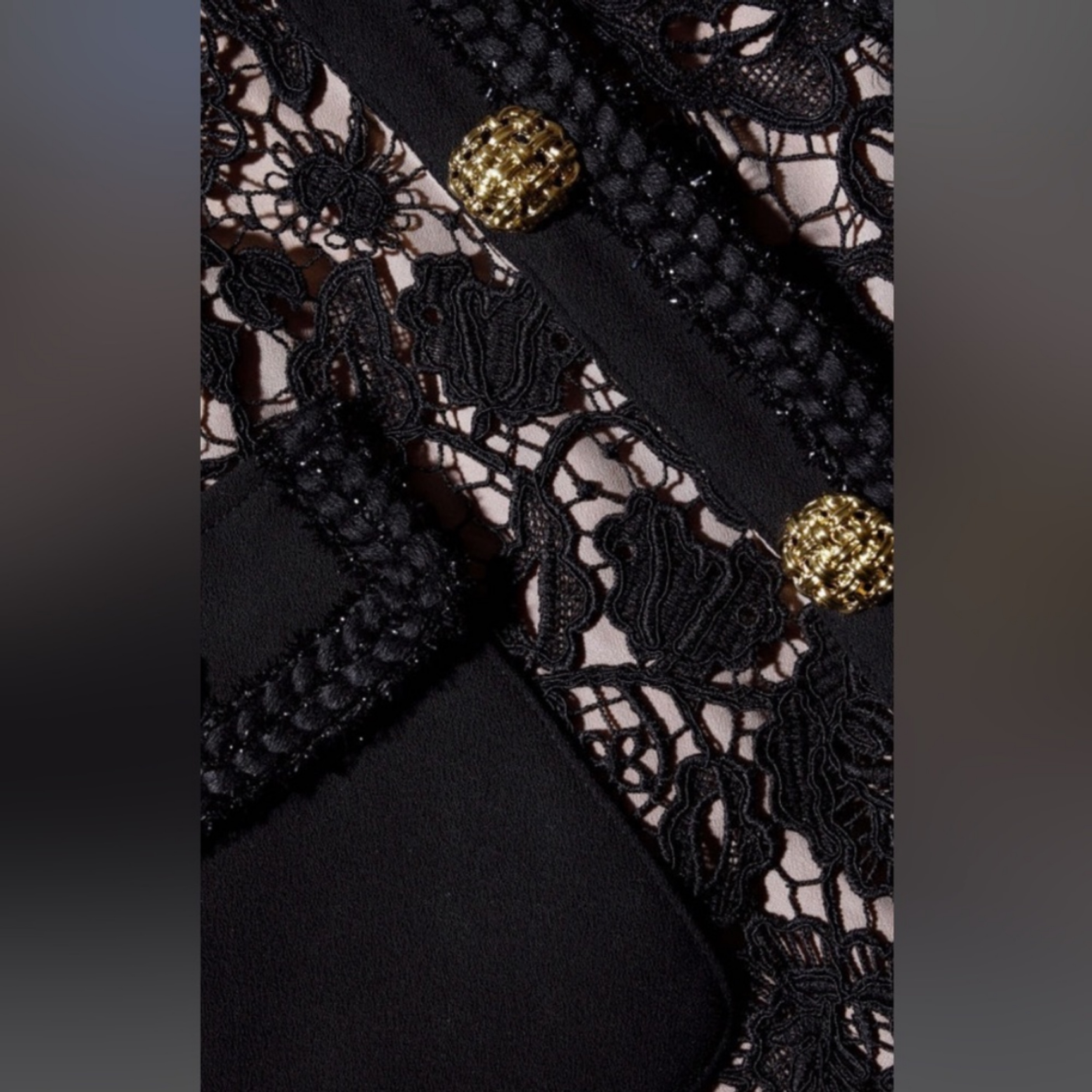 Perfect condition black lace mini dress. Comes with detachable belt. Buttons dont actually open the dress - there is a zipper closure.
