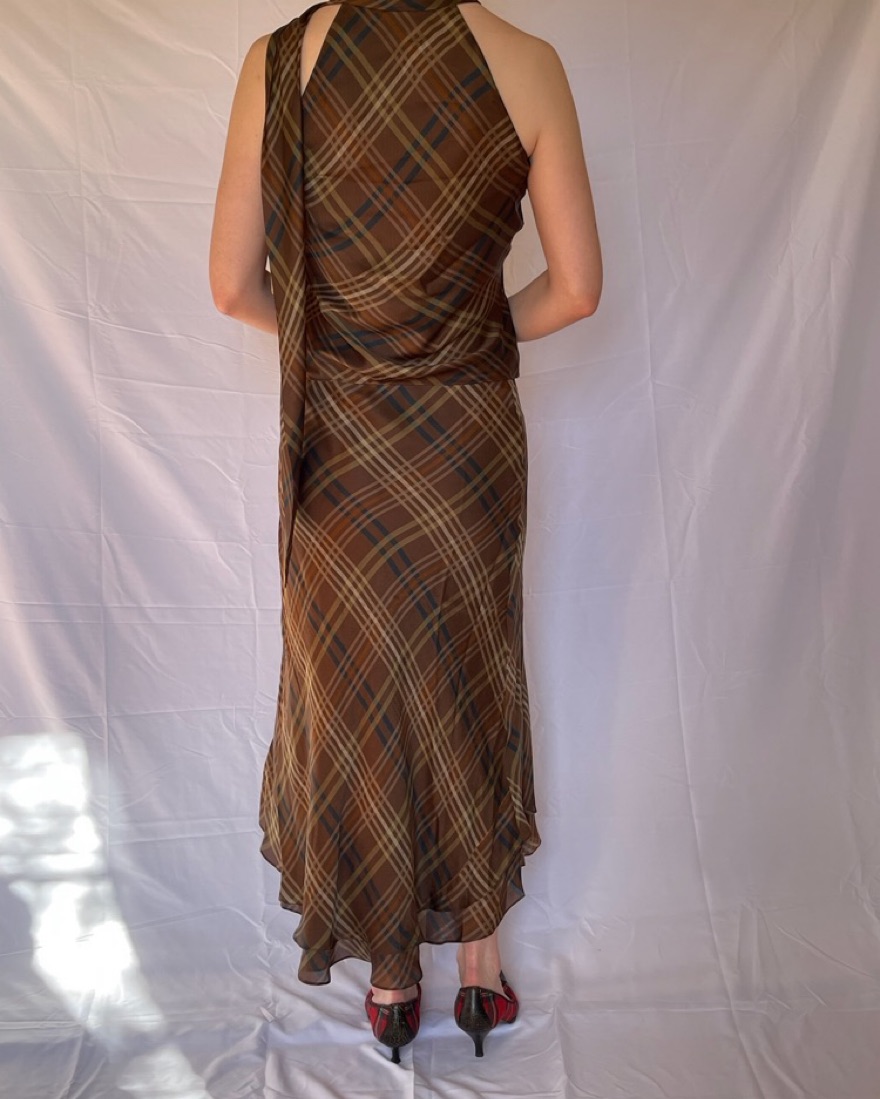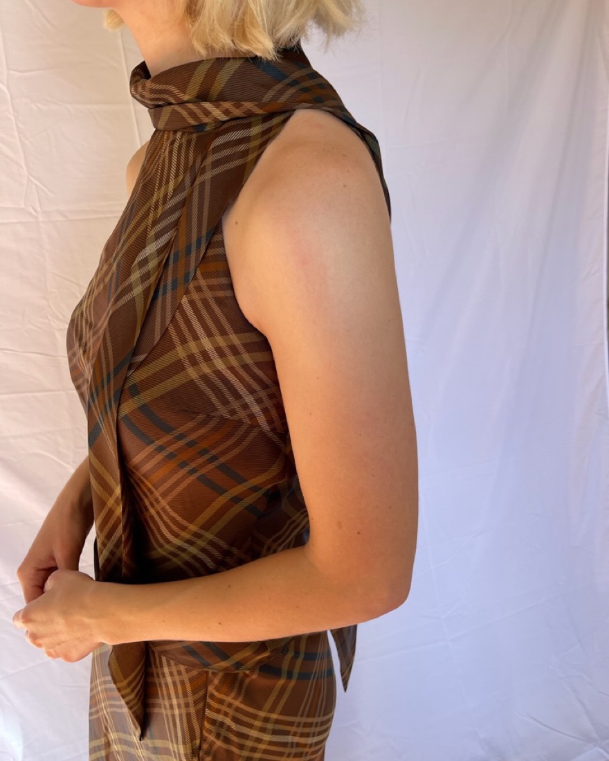 Matching top and bottom with an attached scarf that goes over your shoulder. Beautiful, classic set. Fits like a US 6. Worn once by me. This is very delicate, plz be careful!