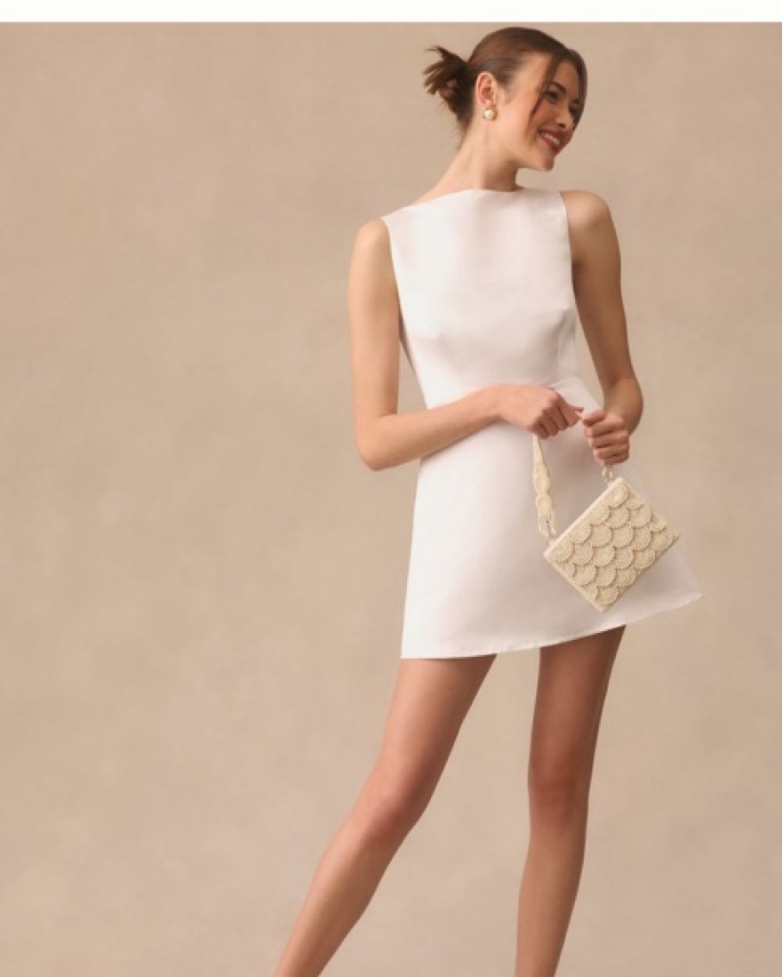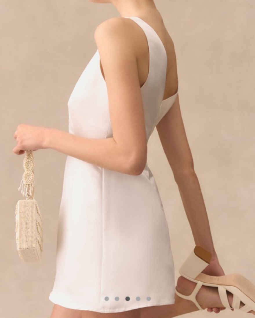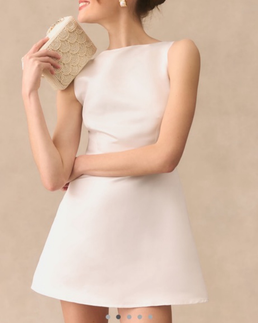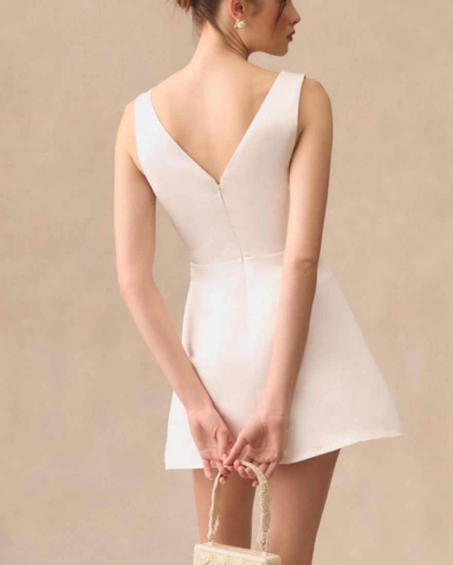 The Reformation Zenni Dress makes a flirty-yet-chic pick. The elegant high neckline flows down to a fitted waist and out to form an A-line shape. The back offers a slight V-neck shape for a playful finish. A-line mini dress silhouette, Invisible back zipper, High boat neckline and V-neck back