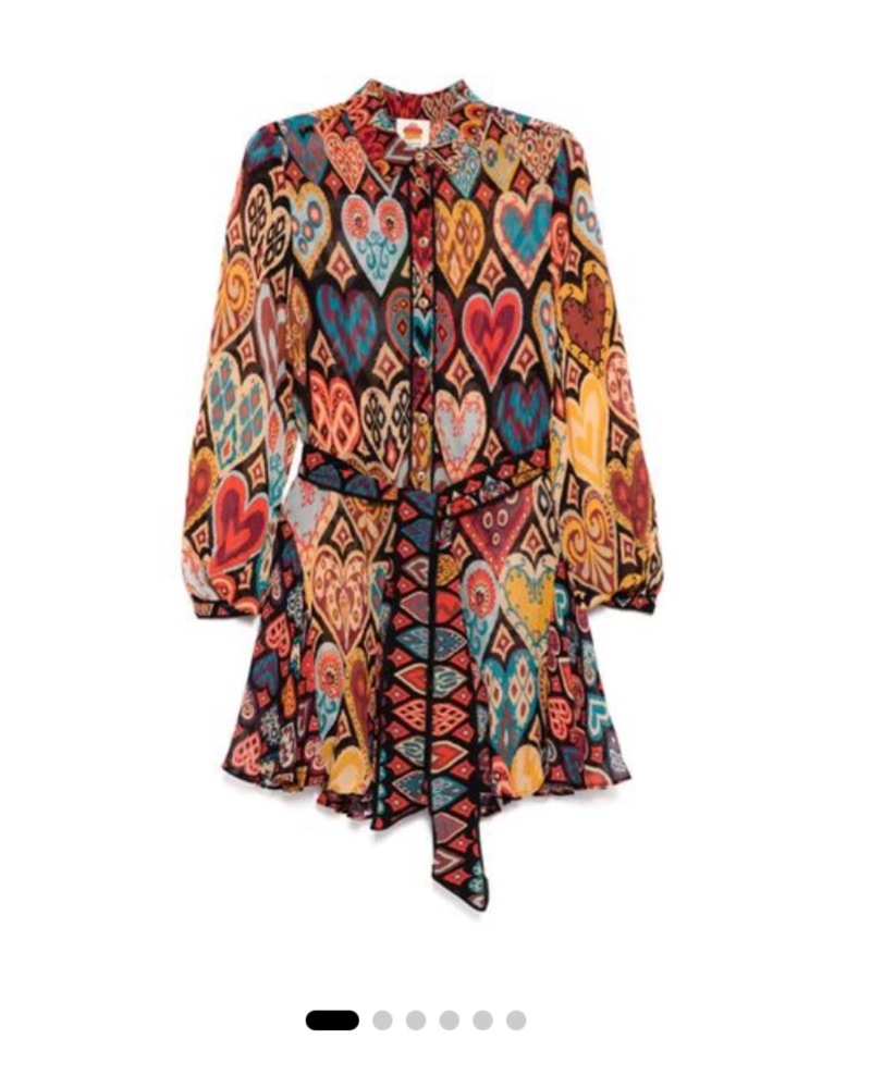 Farm Rio Heart Print Belted Shirt Dress