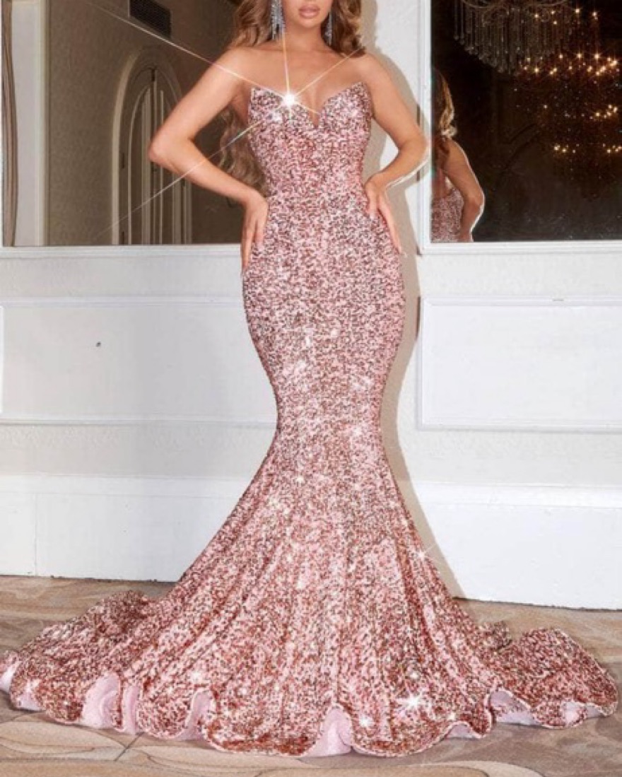 Rose Gold Sequin Prom Dress from Portia and Scarlett. Never Worn! It has a mermaid fit and a sweetheart neckline