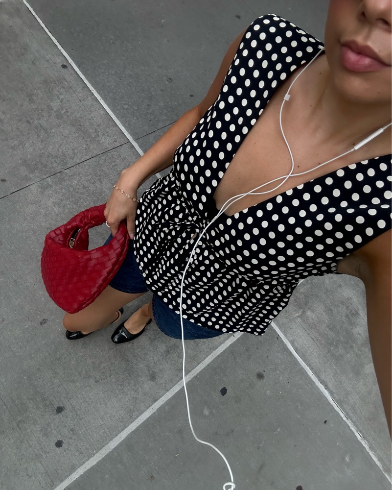 Polka Dot Tie-Front Top by Abercrombie and Fitch - Pickle
