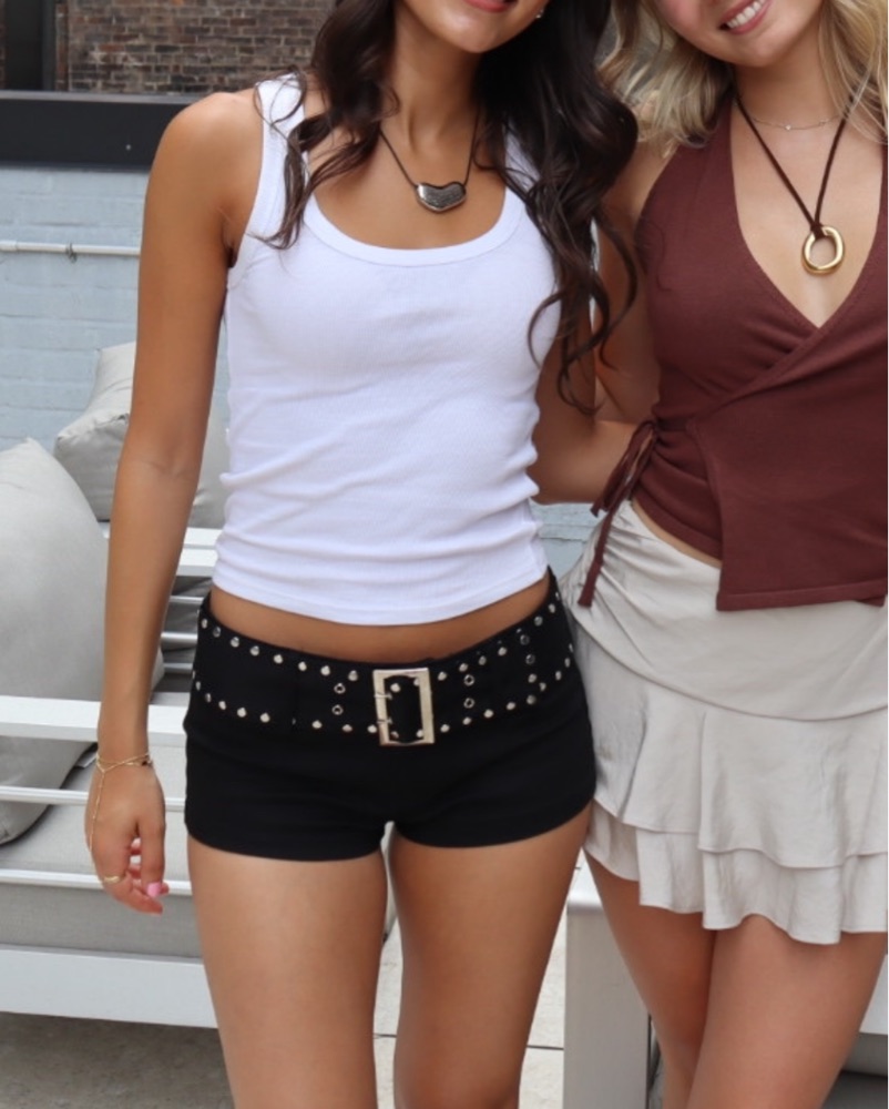 Black micro shorts with studded belt attached. Super comfy