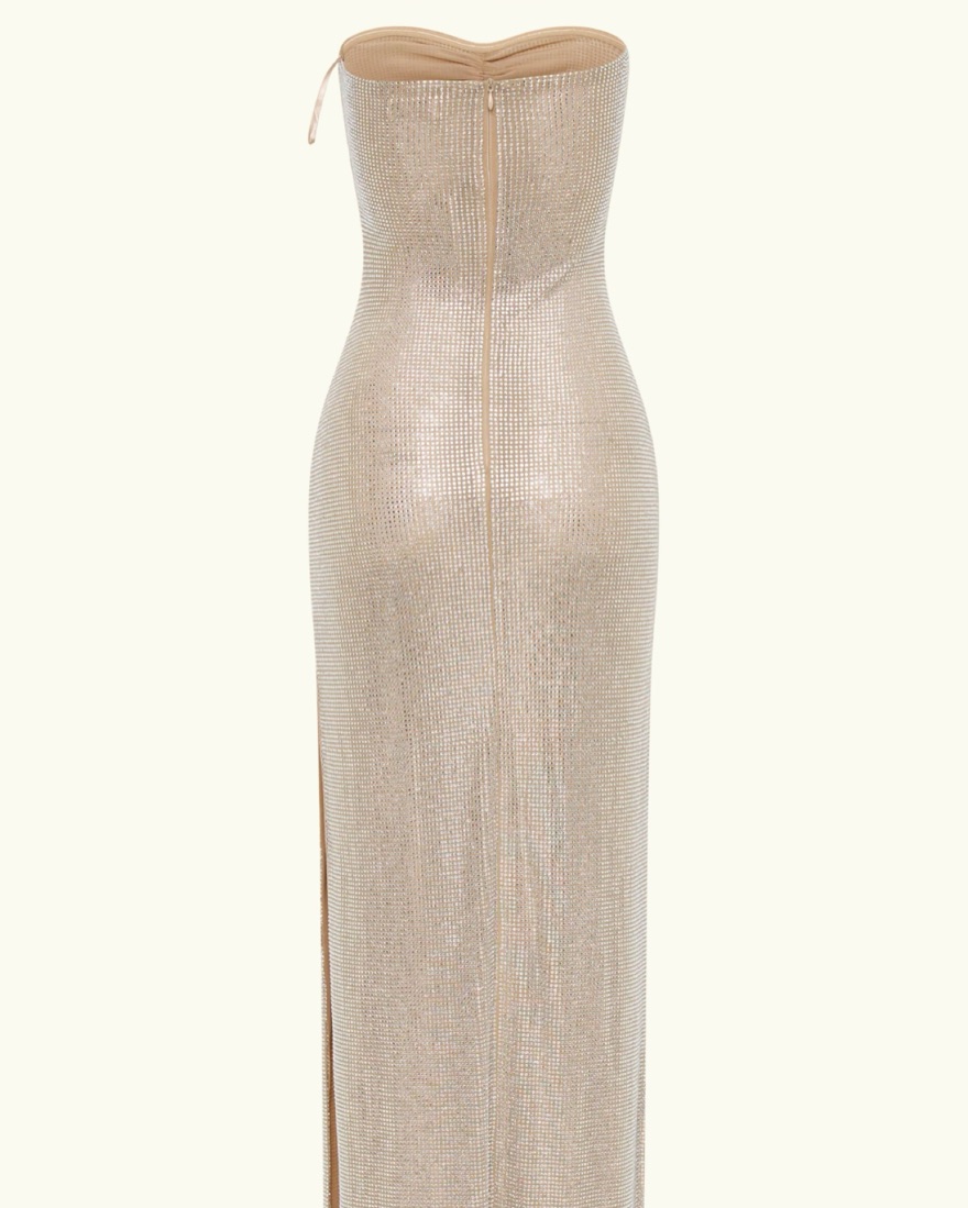 Meshki Stassie Strapless Rose Diamante Maxi Dress in Nude Length≈ 48.5”
