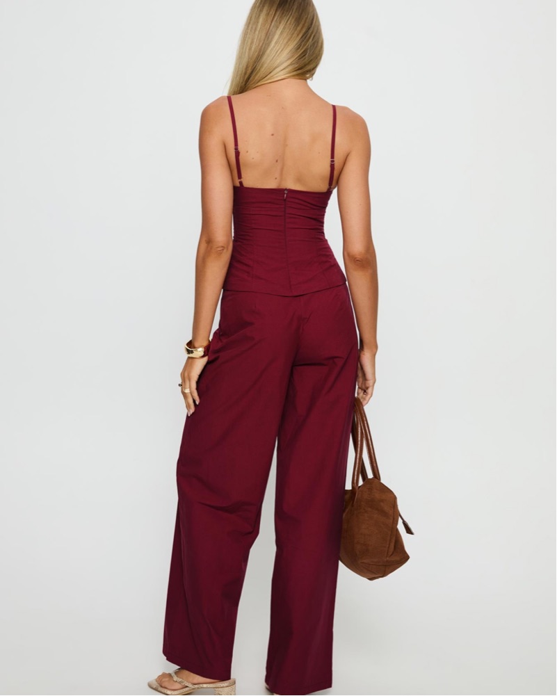 The most flattering set! Fits XXS/XS. Worn once. Zipper on side of pants, zipper on back of top. Adjustable straps. Nothing past A/B cups! I’m 5’2 and the pants didn’t drag, sat over my heeled boots perfect. Can rent separately just DM me!