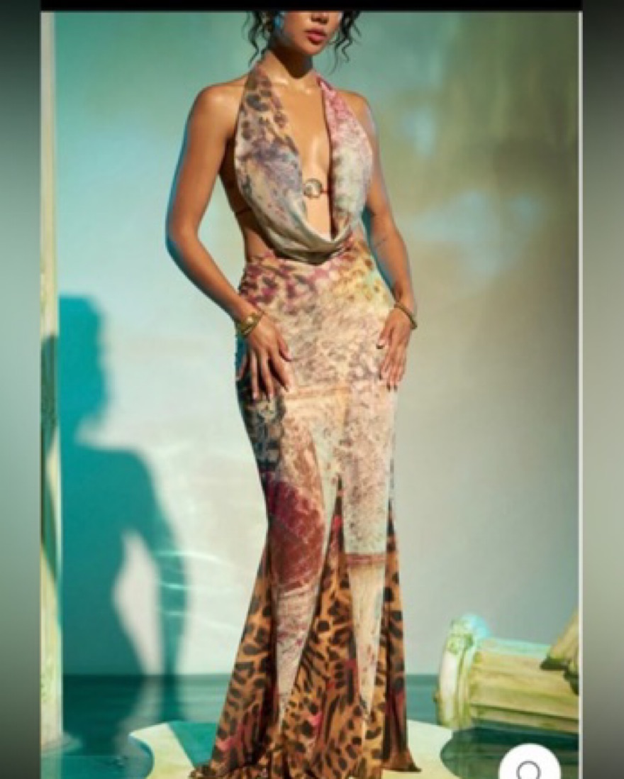 Murci Cowl Maxi Dress - Venice Print by Murci - Pickle