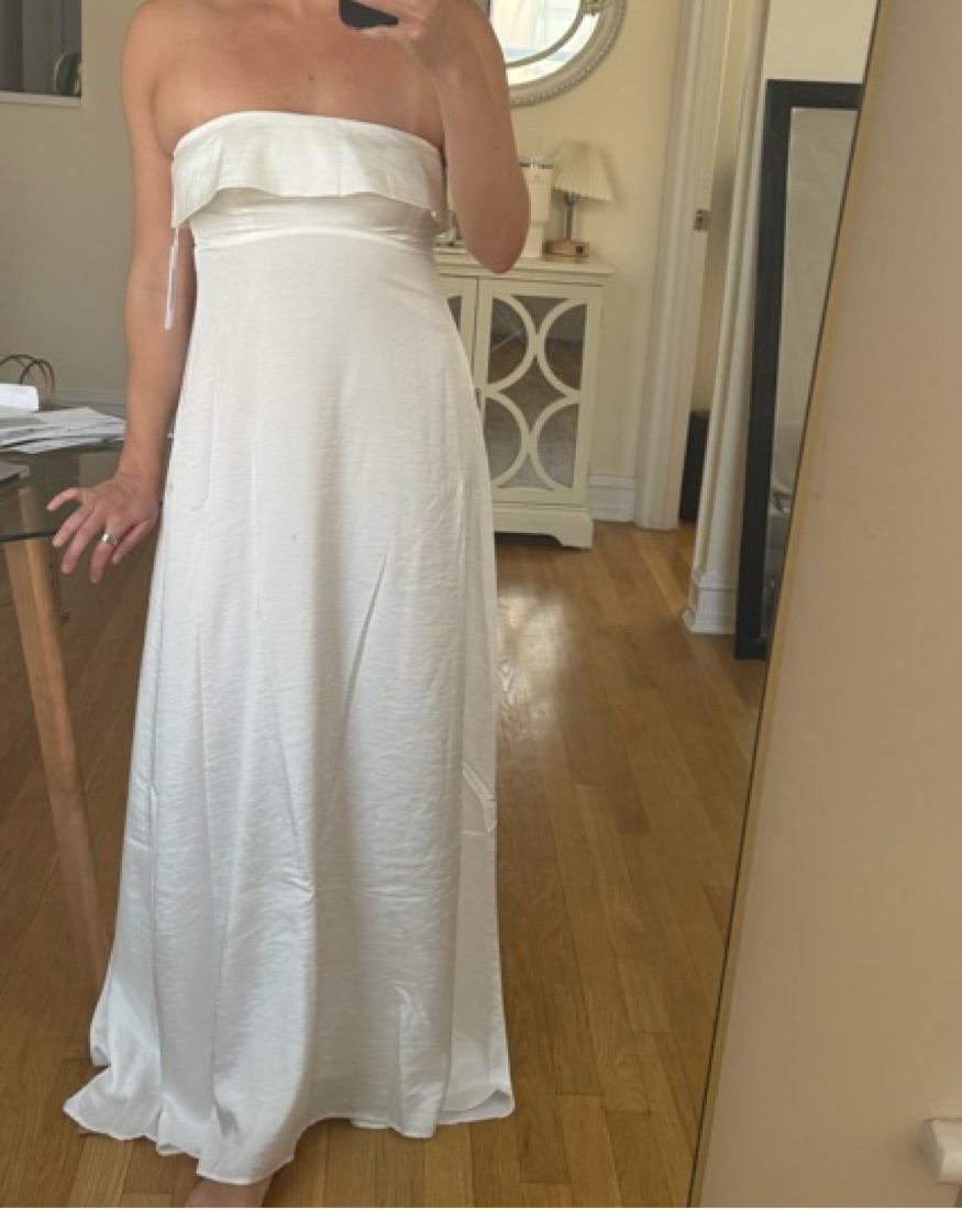 This stunning strapless white maxi dress is perfect for any formal occasion. The flowing, flattering silhouette and luxurious fabric will make you feel like a true princess. Fits like a glove with the stretch on the back. Perfect for a beach vacation night out.