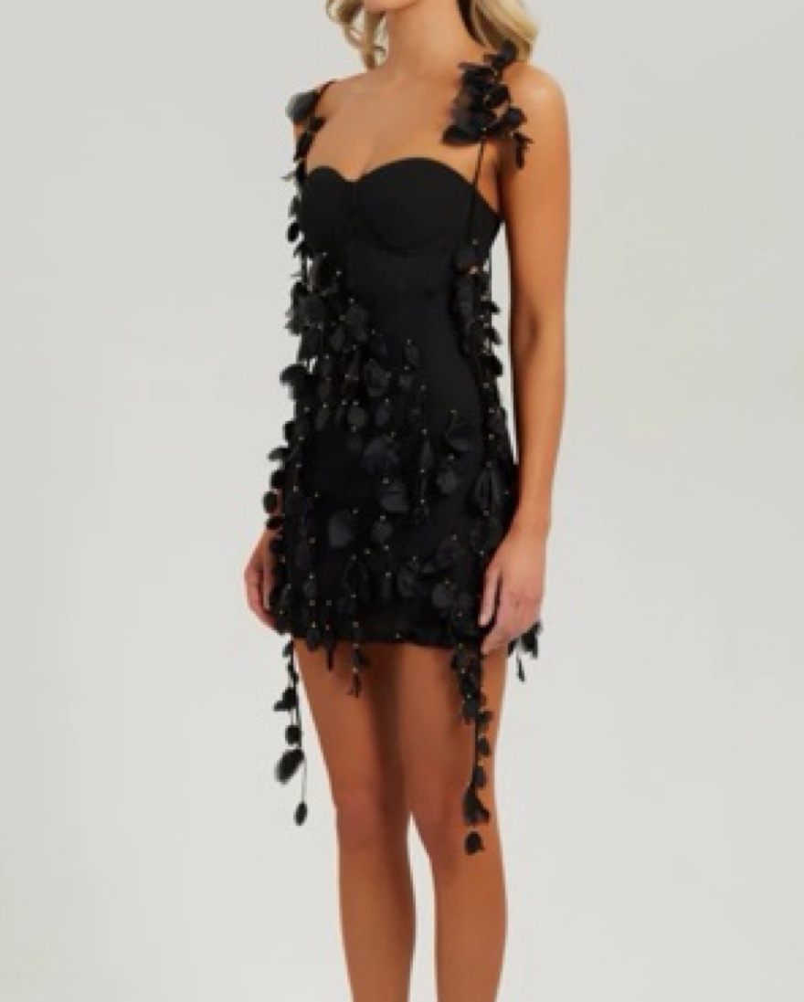 Heiress Black Petal Mini Dress