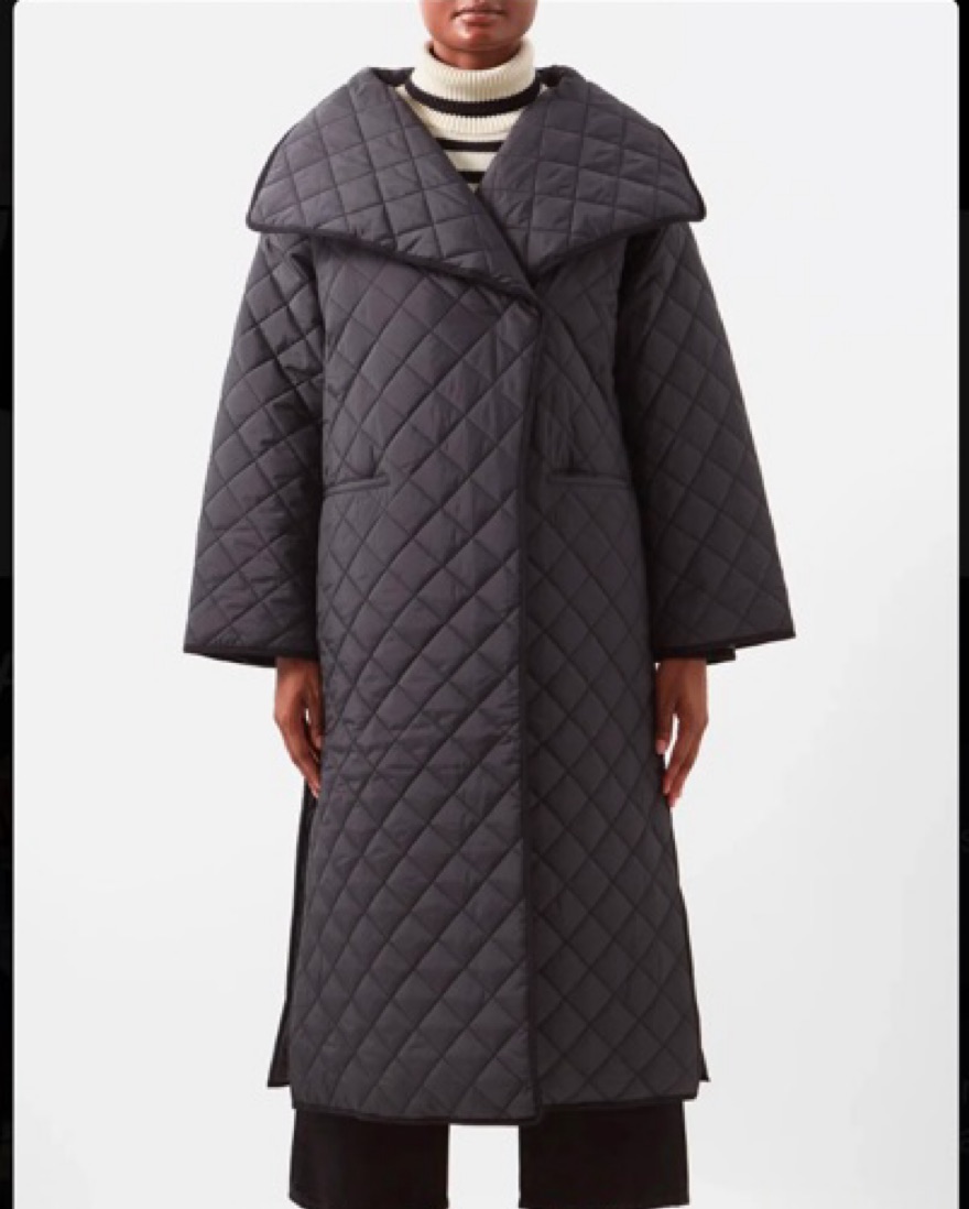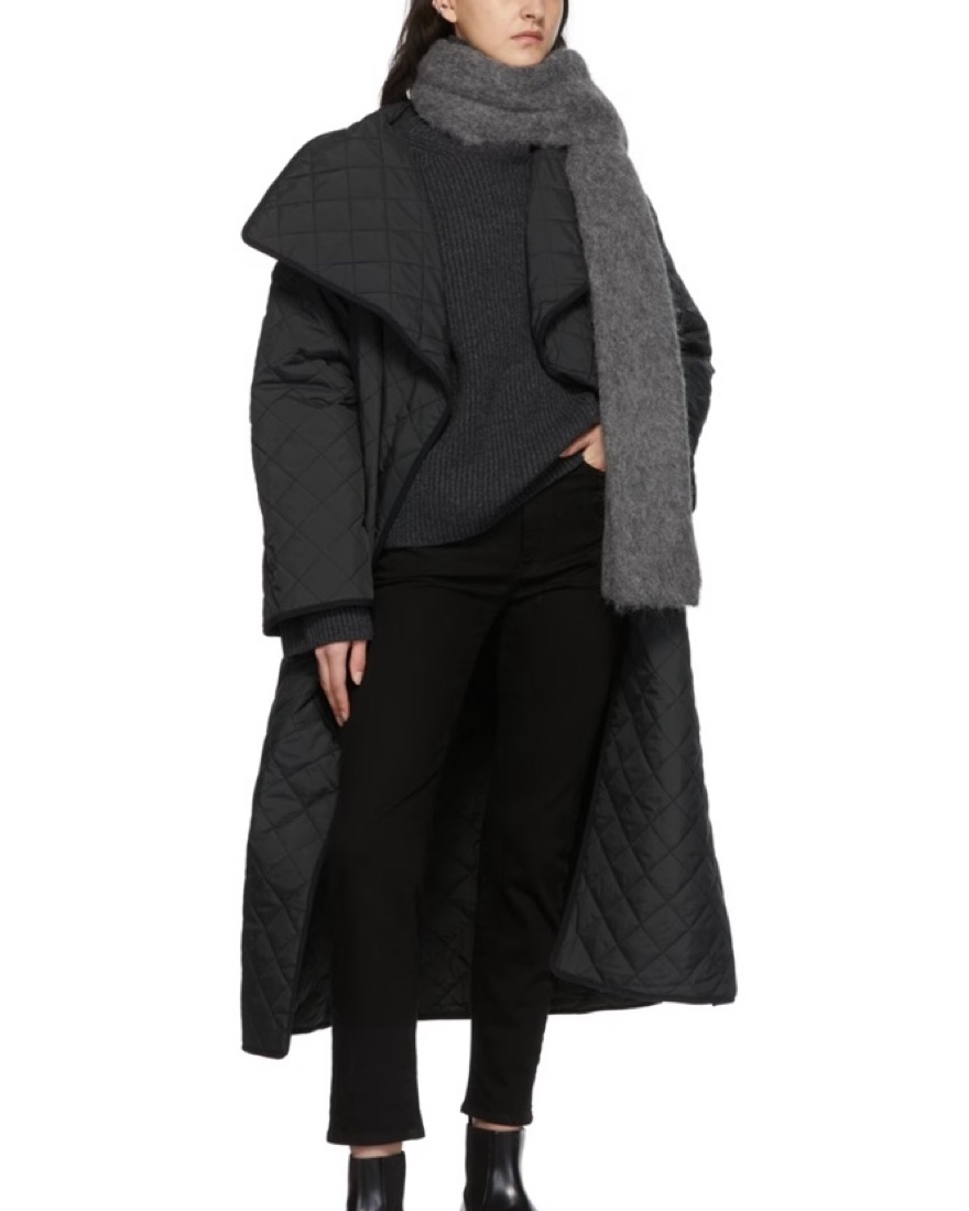 Long sleeve quilted padded technical taffeta coat in black. Runs oversized! Fits size XXS-M easily.