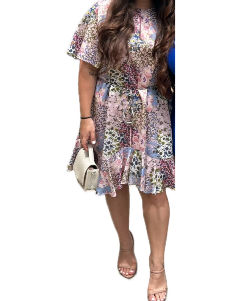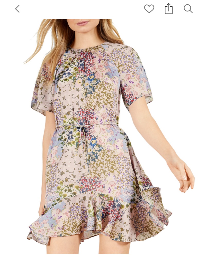 Pink with floral print dress from Ted Baker. Optional tie for more fitted look. Perfect dress for bridal shower!