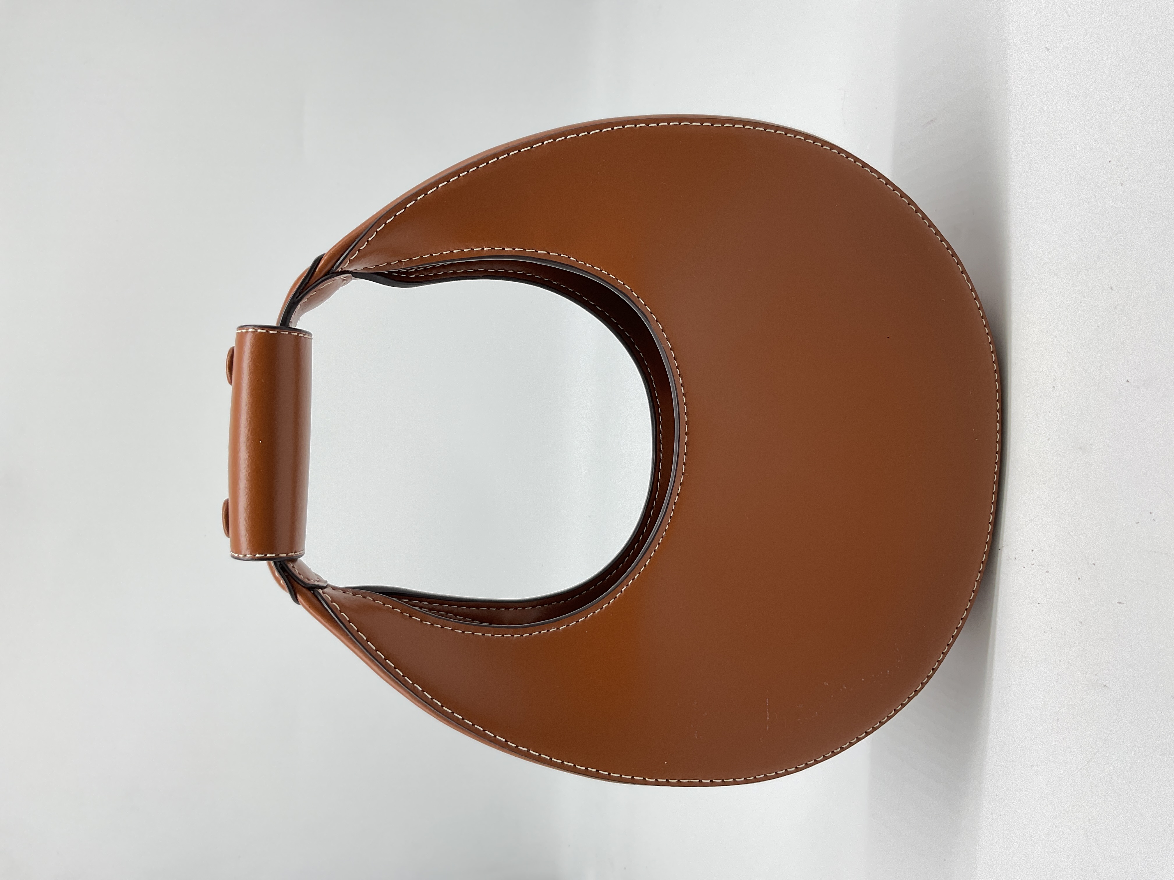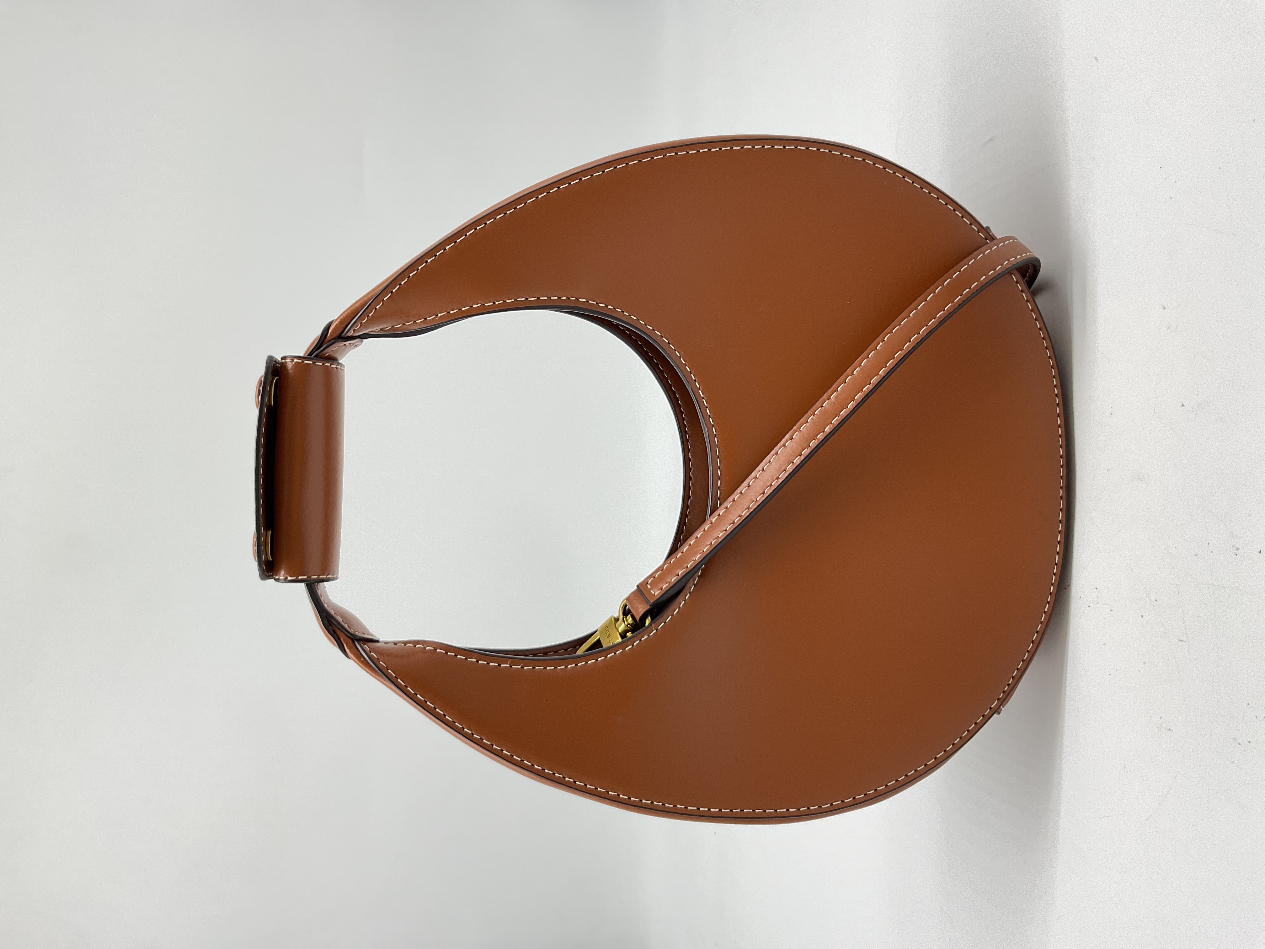Sleek crescent shape holds all your essentials while keeping hands free. The rich tan leather adds effortless cool to any outfit.