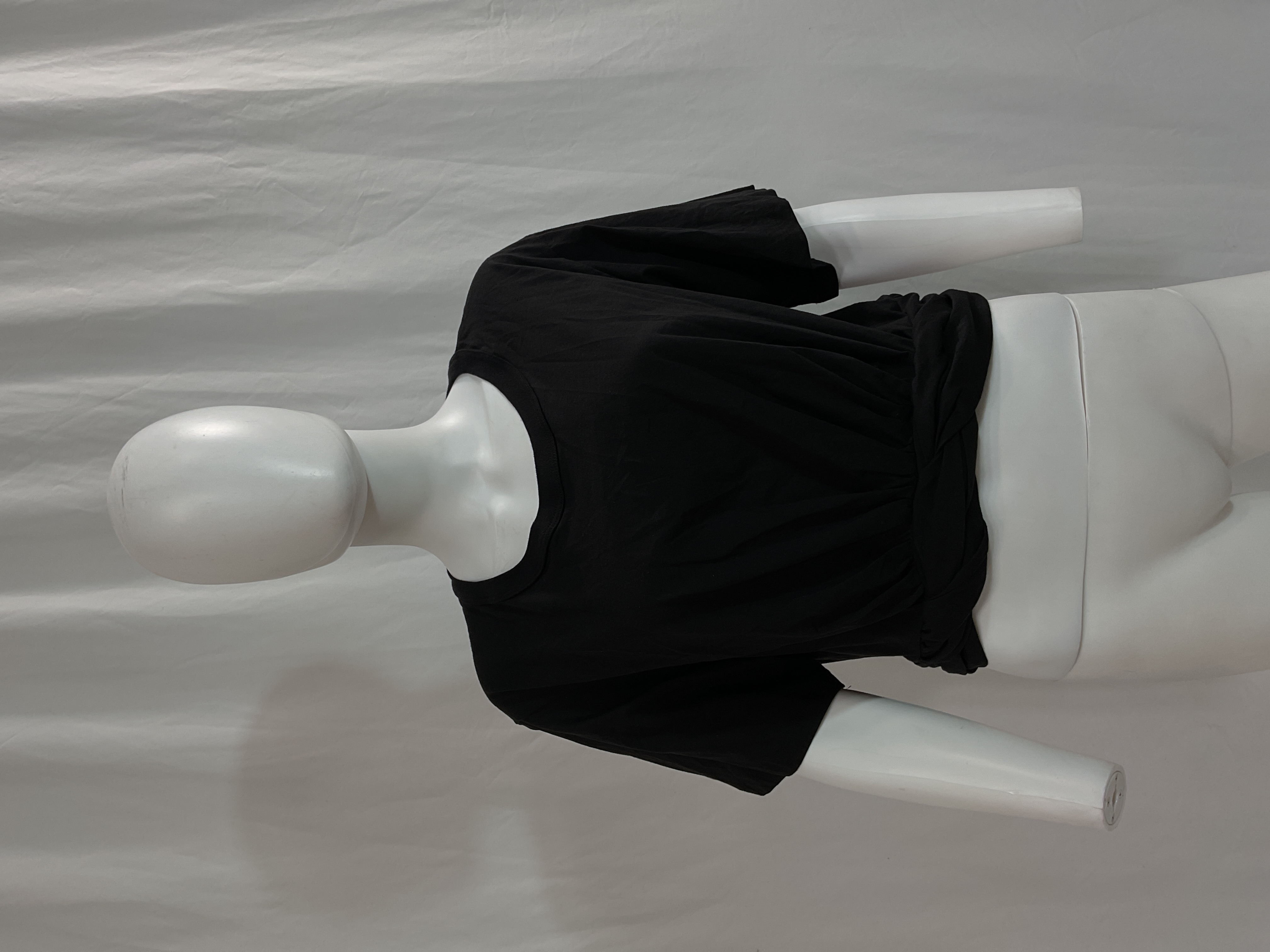 A sleek black tee that elevates any outfit. Perfect for layering or wearing solo with jeans and heels.