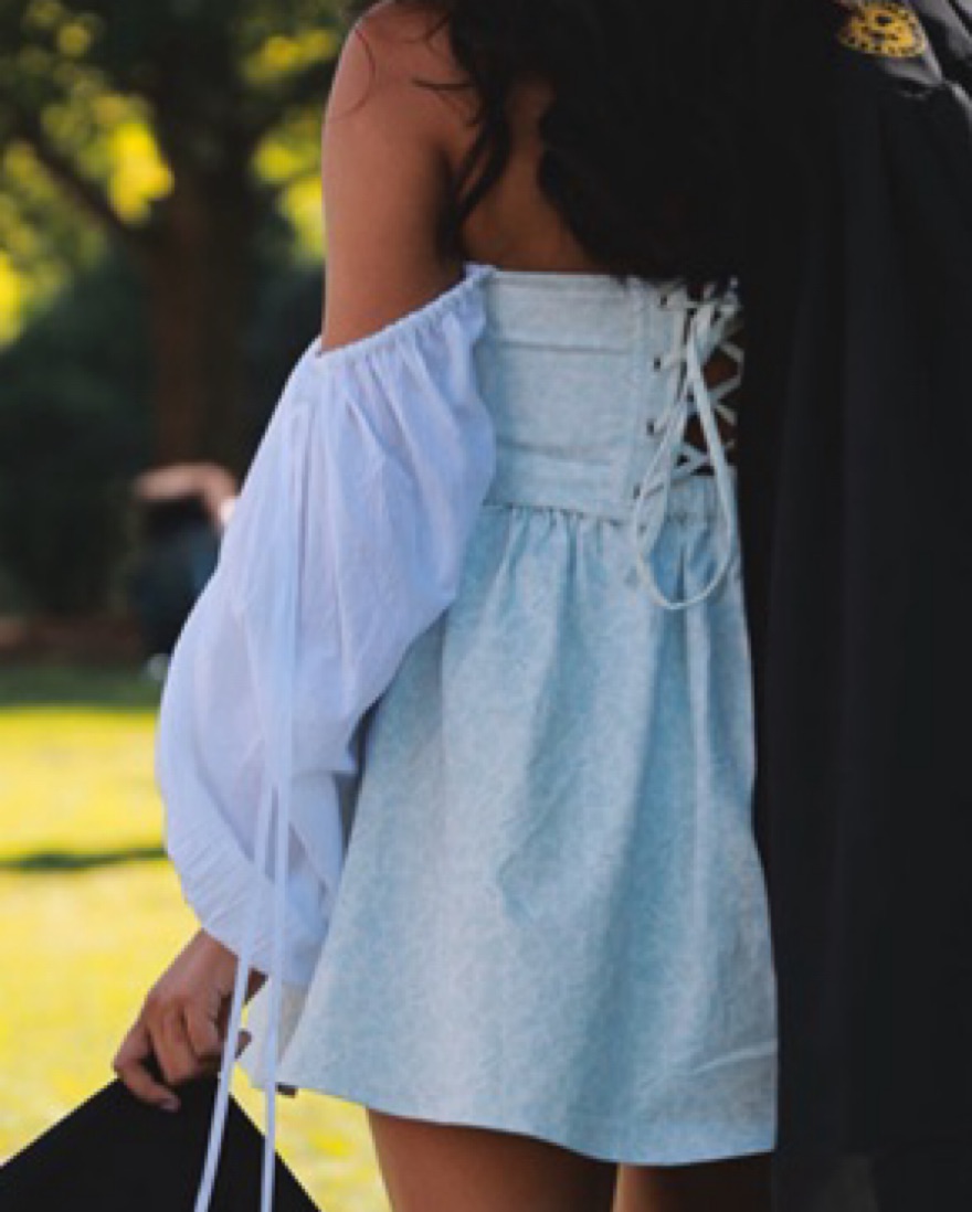 This dress is super cute and it has a corset back so it’s flexible with sizing. I didn’t have an issue with it falling down.