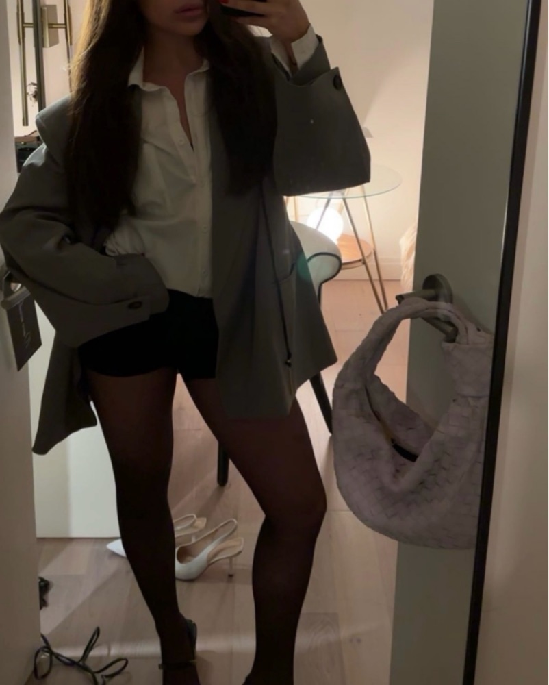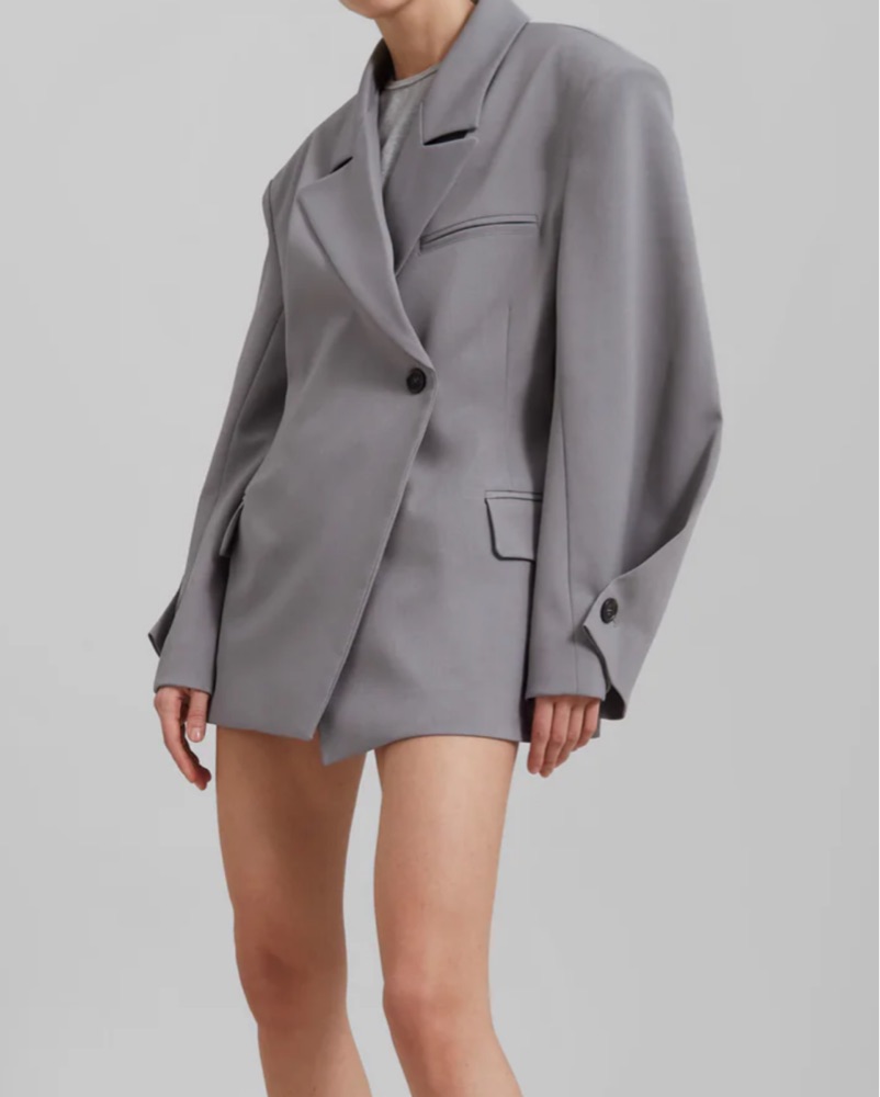 pia oversized boxy blazer. oversized button cuffs. illusion welt pocket