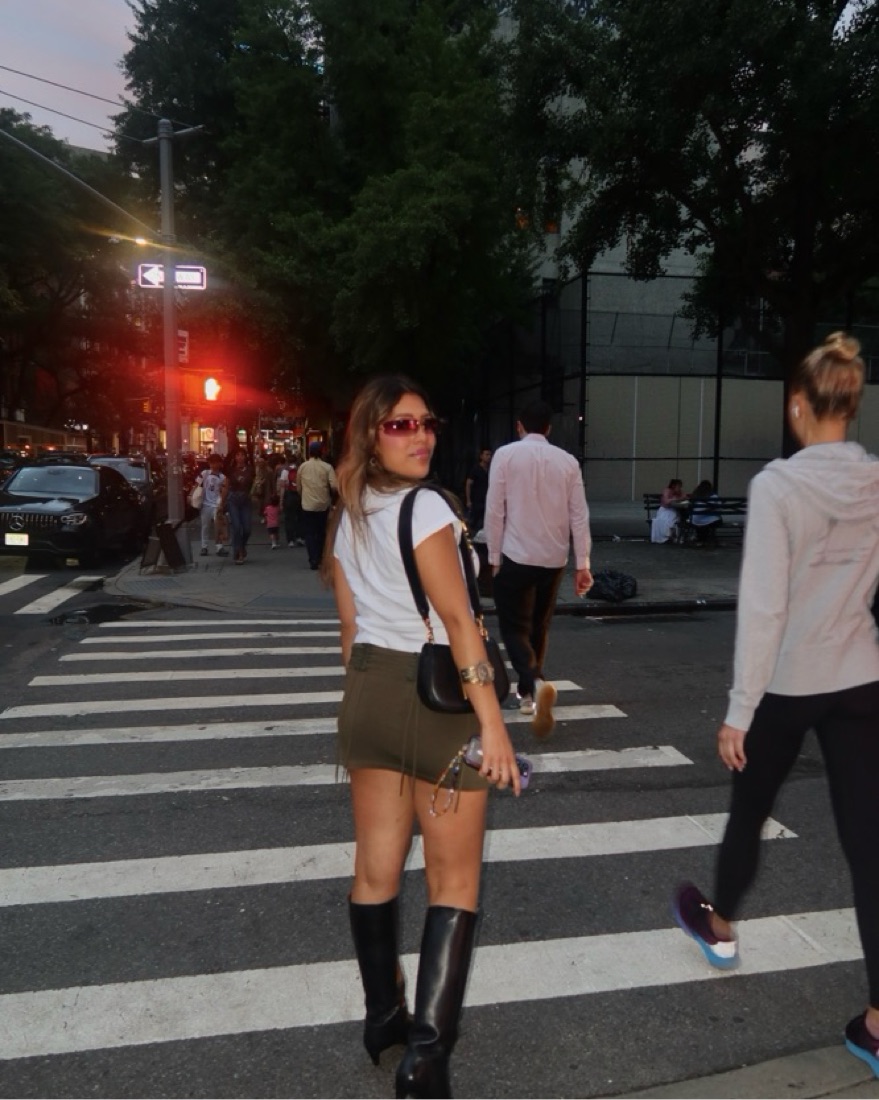 This army green mini skirt fits nicely and can be dressed up or down. It’s a M but fits like a S/M
