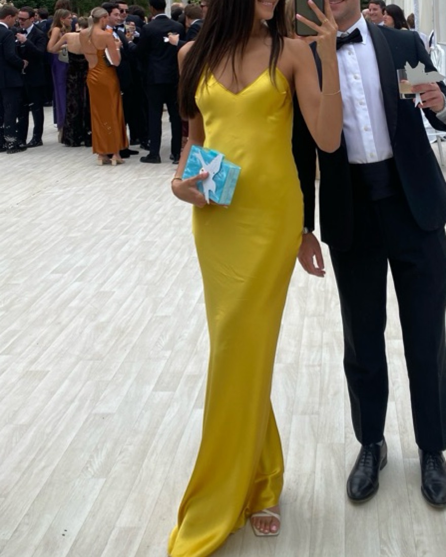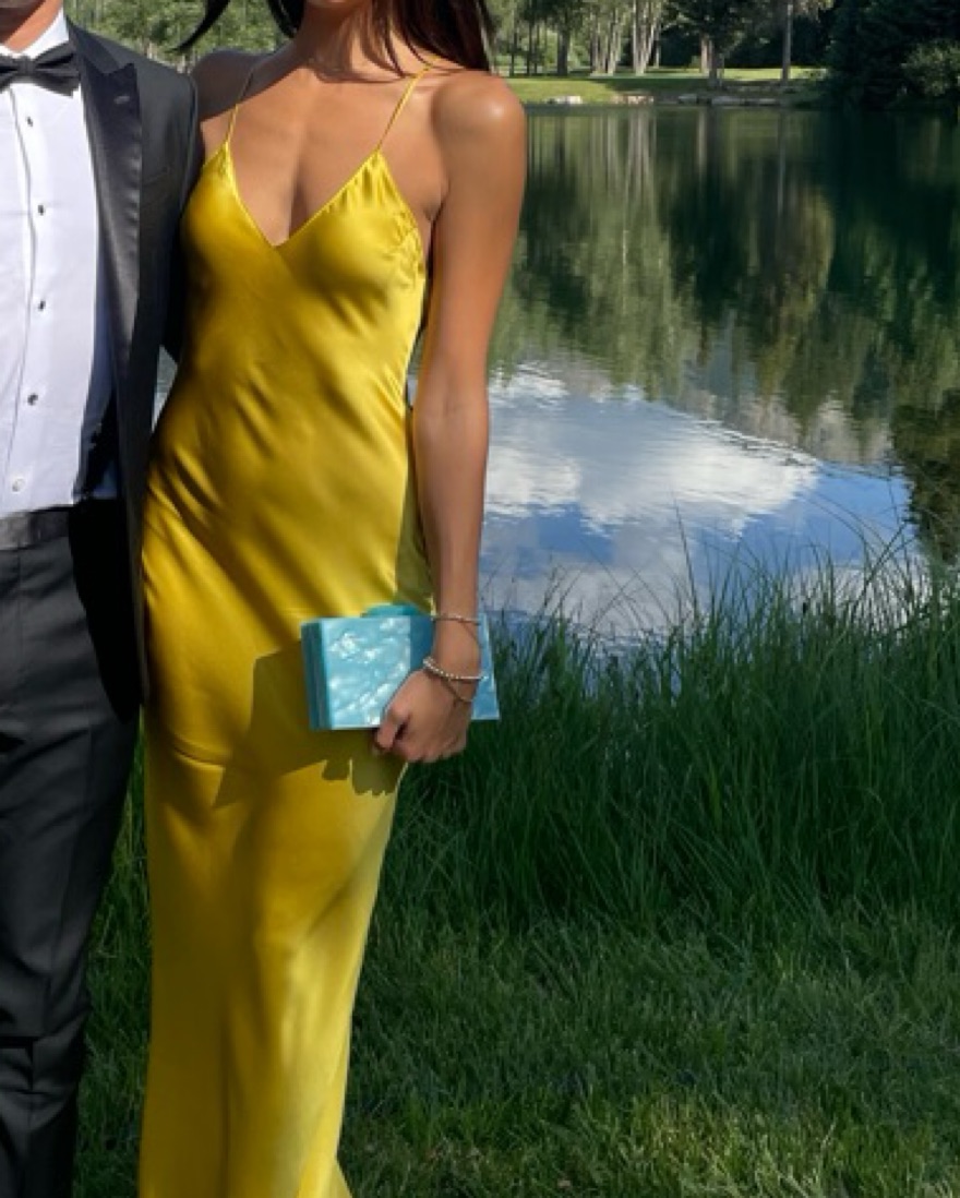 Stunning silk yellow gown with open back! Worn once to a summer wedding.