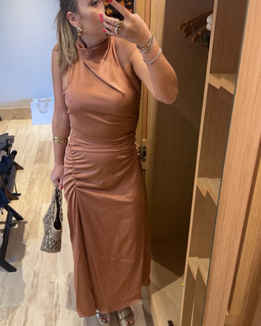 ALC Ruched Satin Midi Dress in Copper by ALC - Pickle