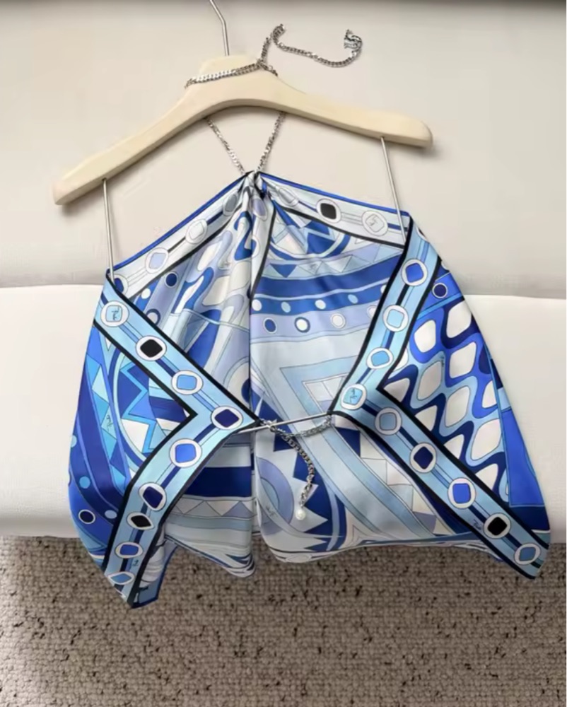 Stunning blue pucci top perfect for summer. ***High quality dupe. Dry cleaning included in the price. AVAILABLE STARTING MAY