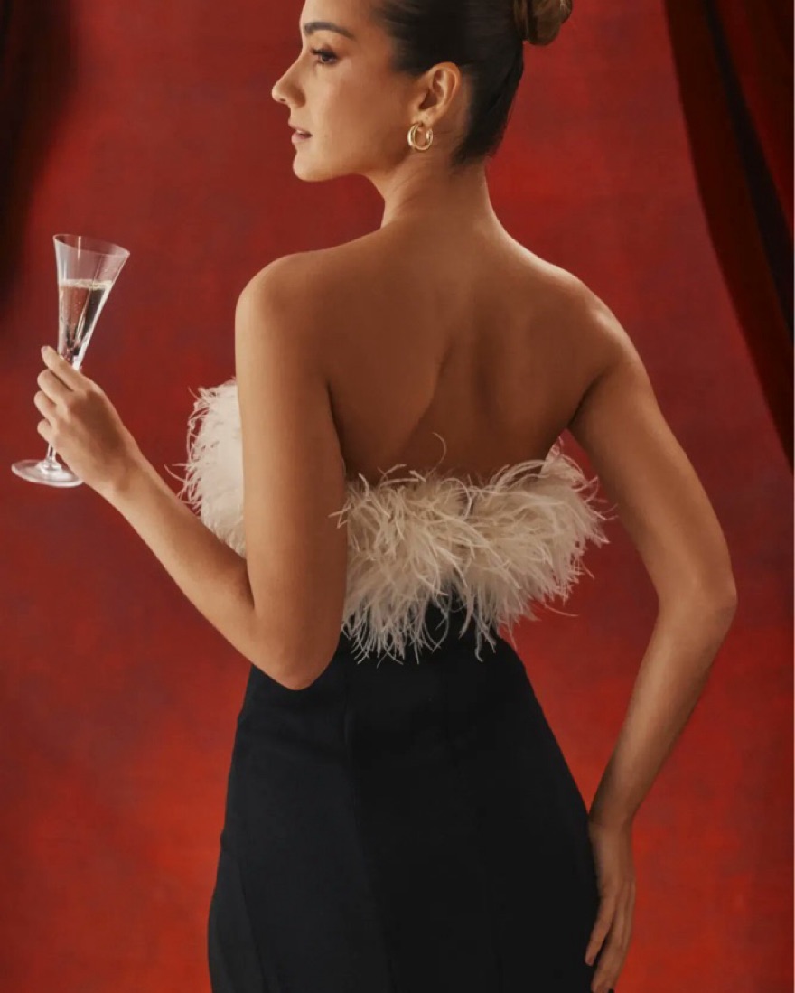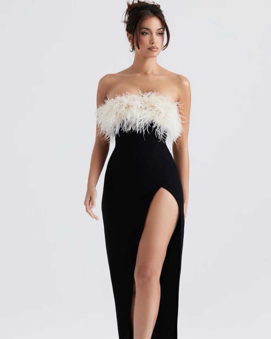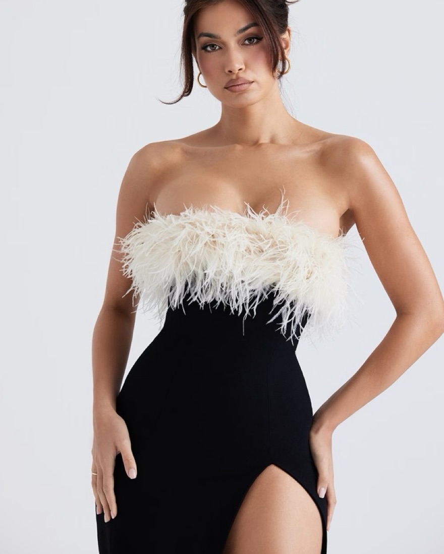 House of CB Sarai Feather Slit Dress by House of CB - Pickle