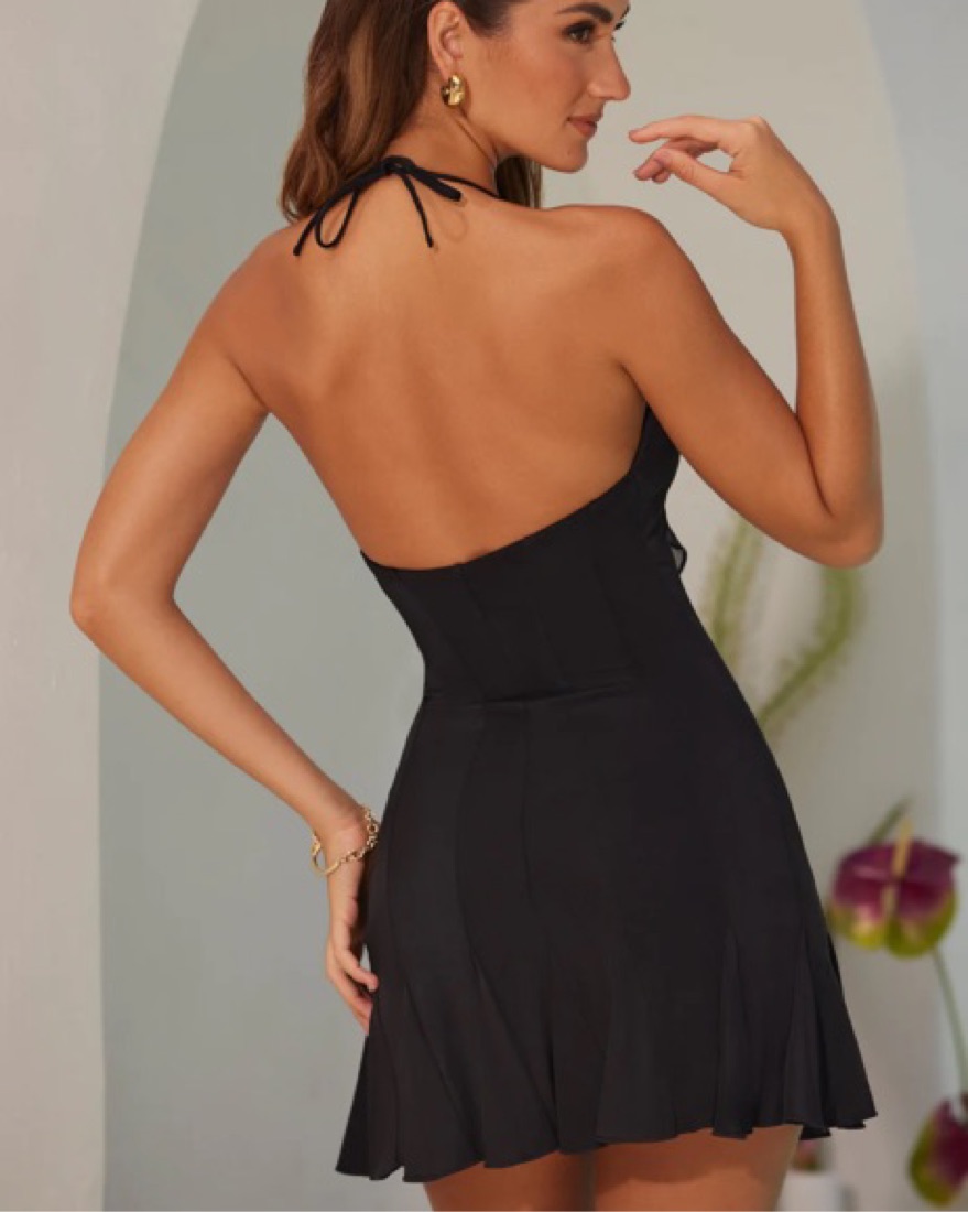 So classy and pretty, material is stretchy so it fits anywhere between xs/s/m. The ties are adjustable so you can make it tighter/shorter. Very comfy material and cant see if you spill/get dirty.