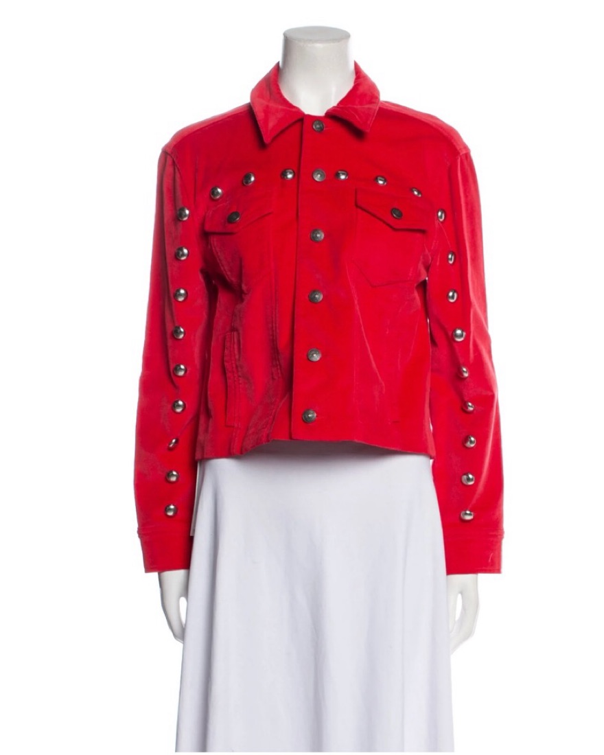 Studded Red Denim Jacket