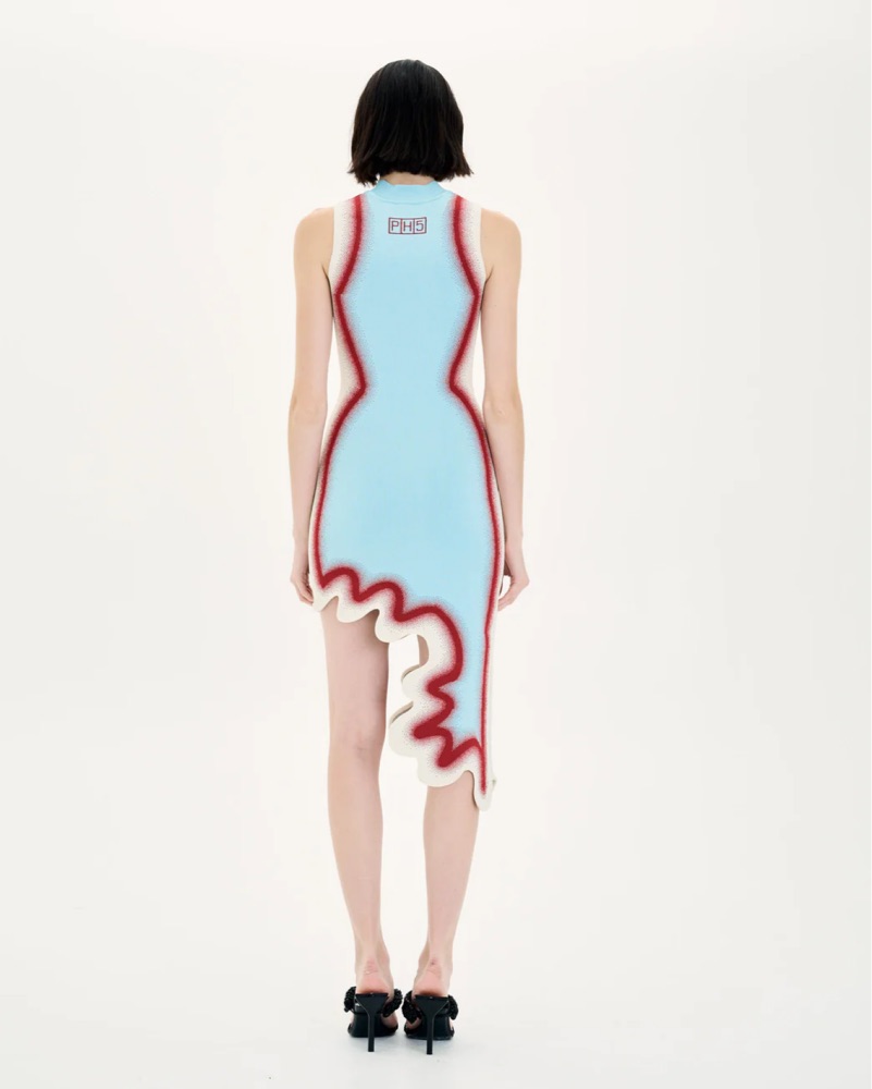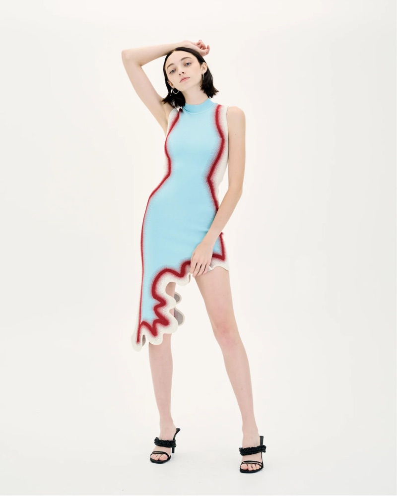 This striking dress features a bold color-blocked design and playful ruffles, perfect for adding a touch of whimsy to any occasion. The fabric will have you looking snatched !!