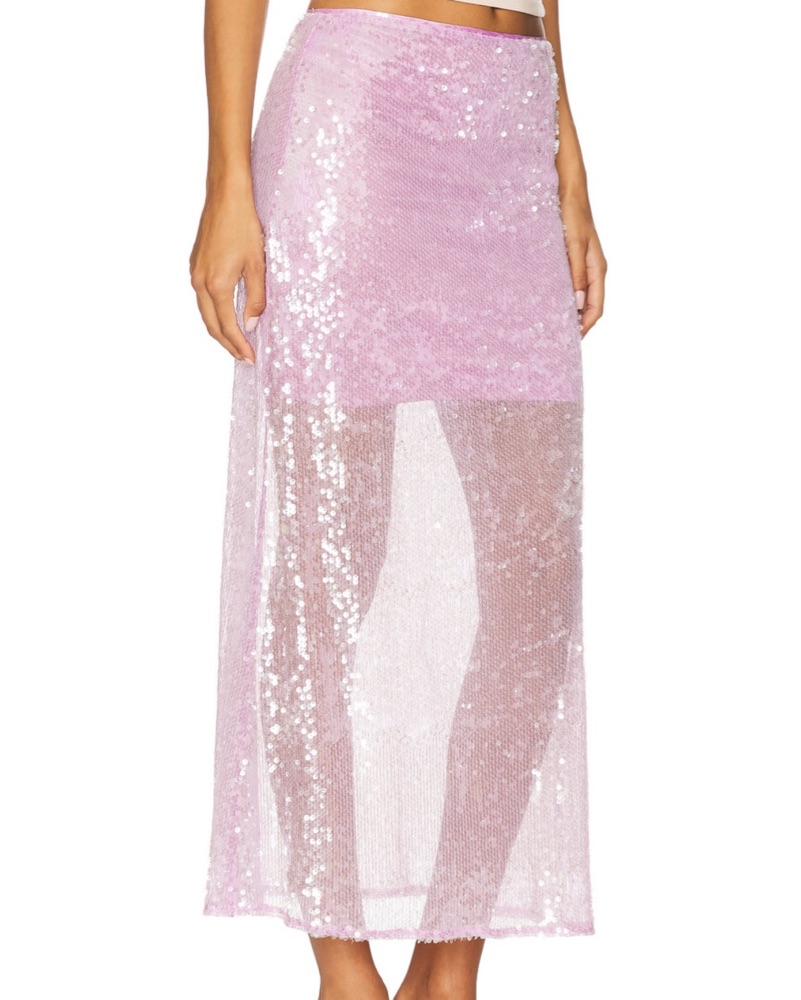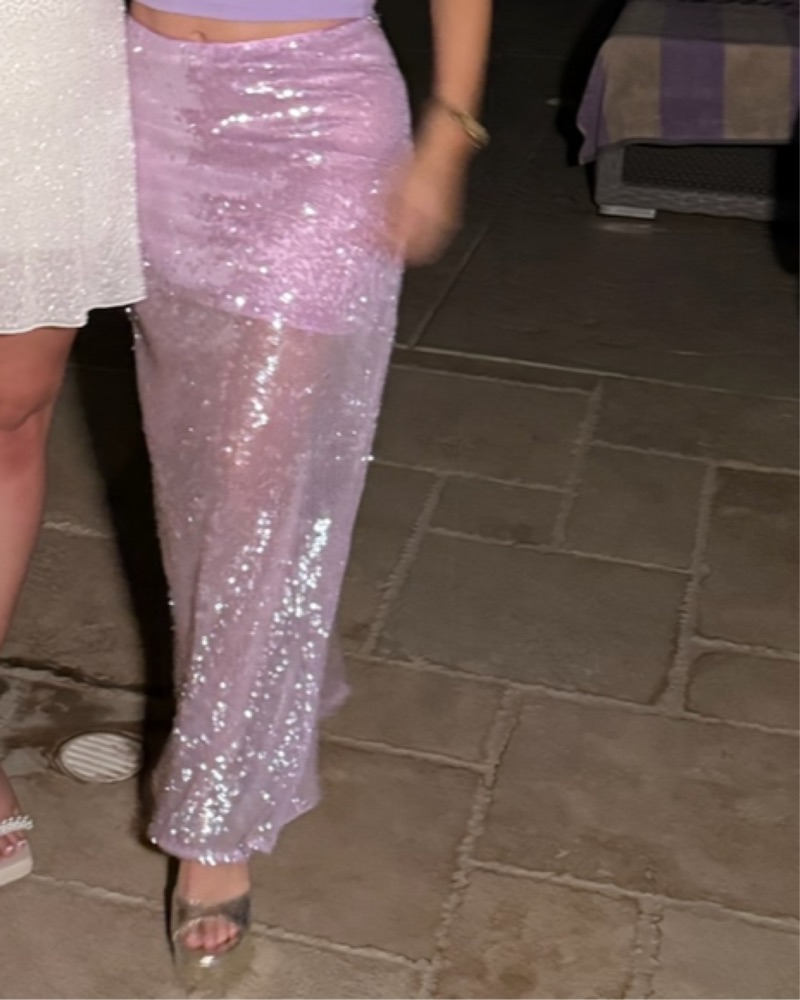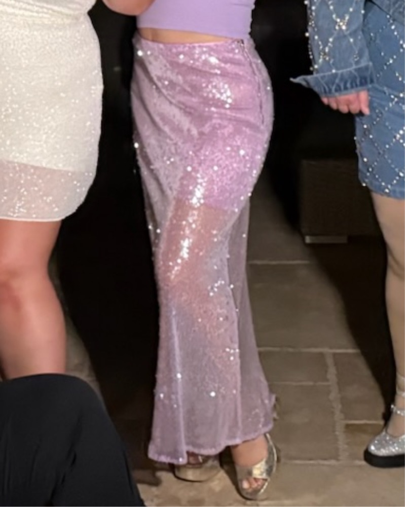 Light purple sequined maxi skirt. Only worn once so it’s in perfect condition!