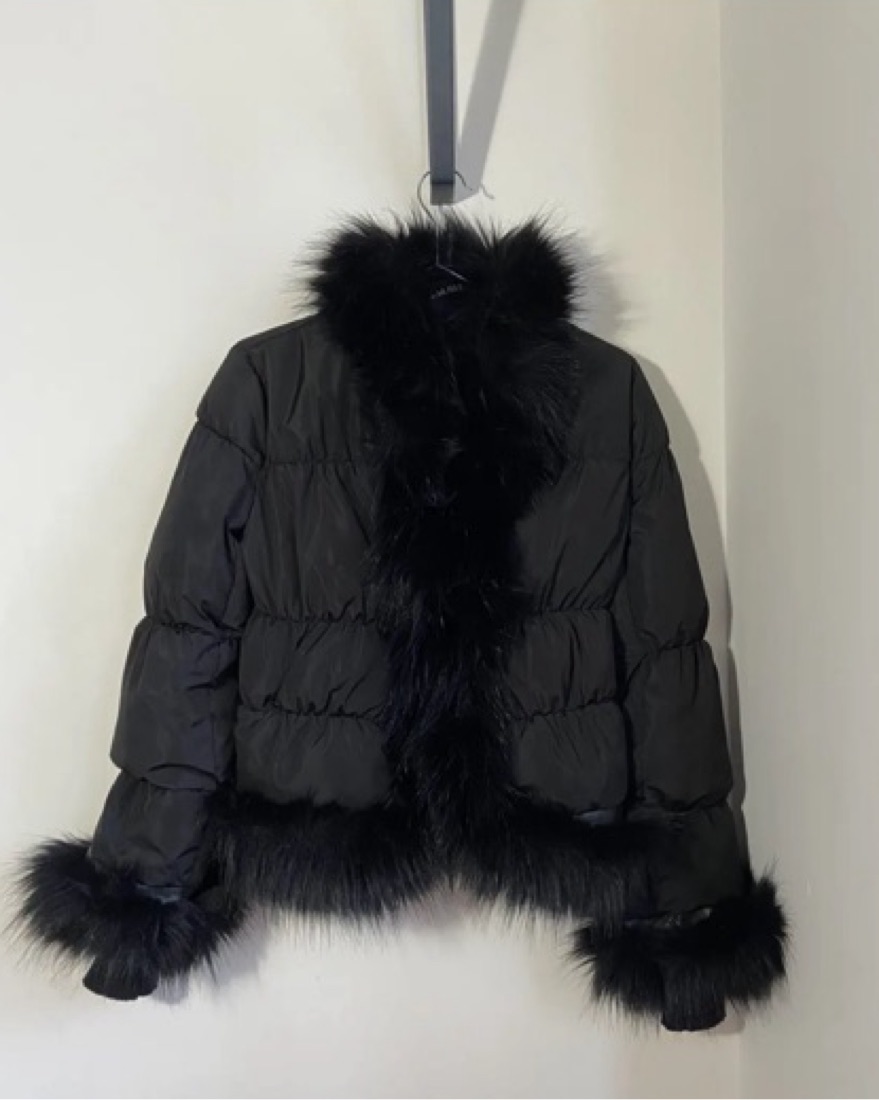 It has a hook clasp on the middle to close the jacket! Size S but also fits XS and M. Perfect for a night out.