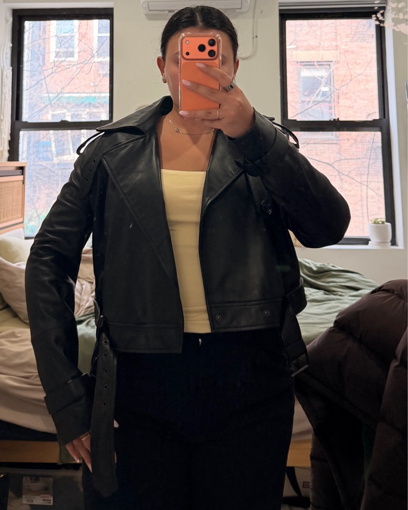 Cropped black leather jacket, all black hardware, size medium
