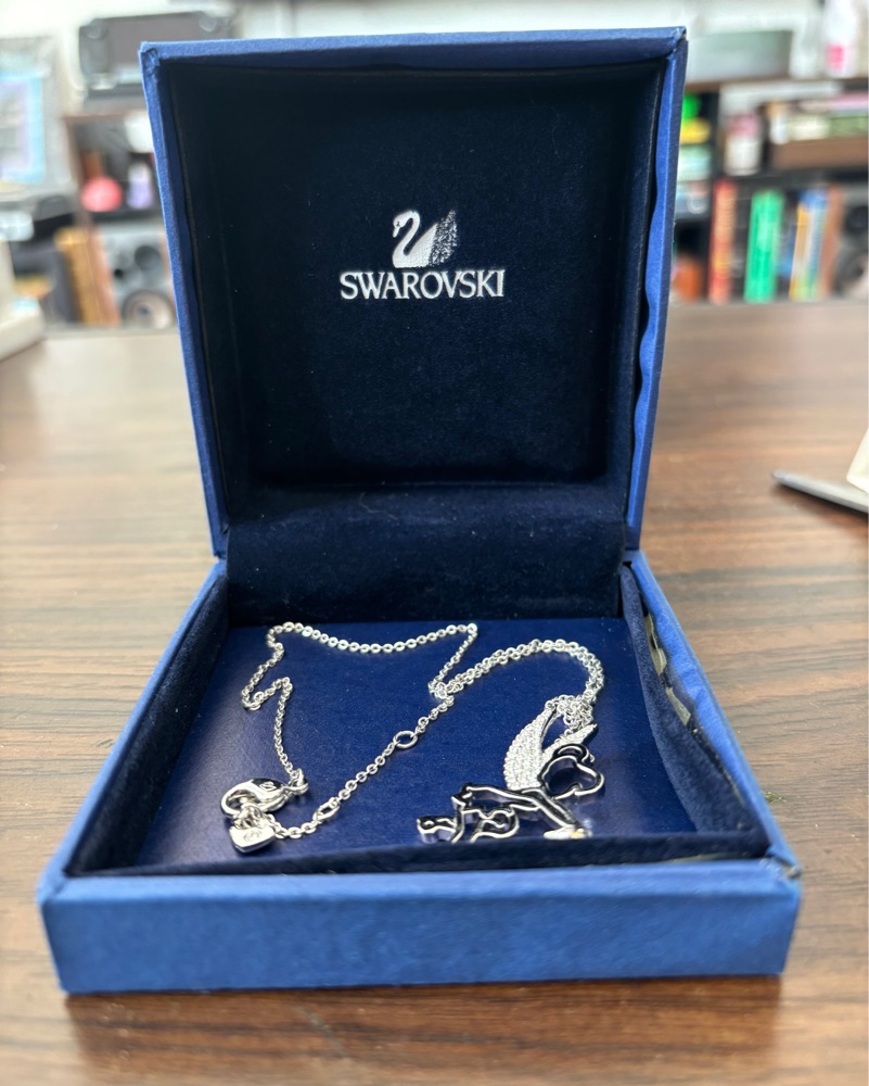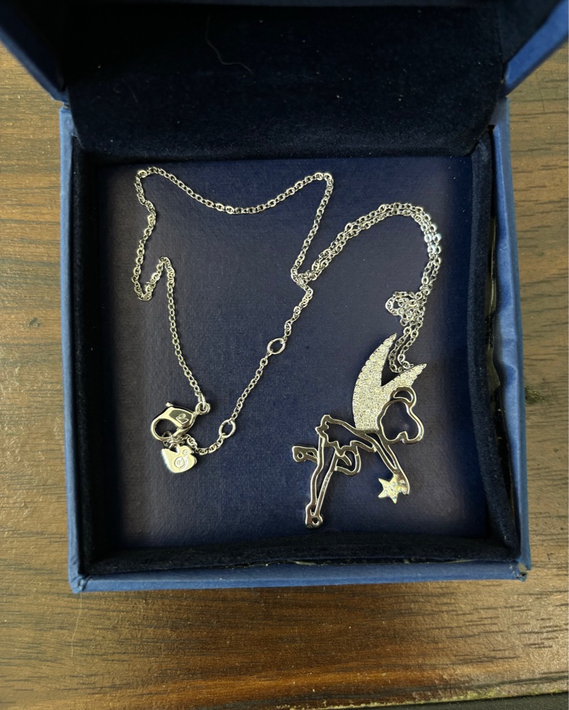 Swarovski Tinkerbell Necklace including the original box. Chain has three adjustable clasps and Tinkerbell charm is 1 3/4 inches in height.