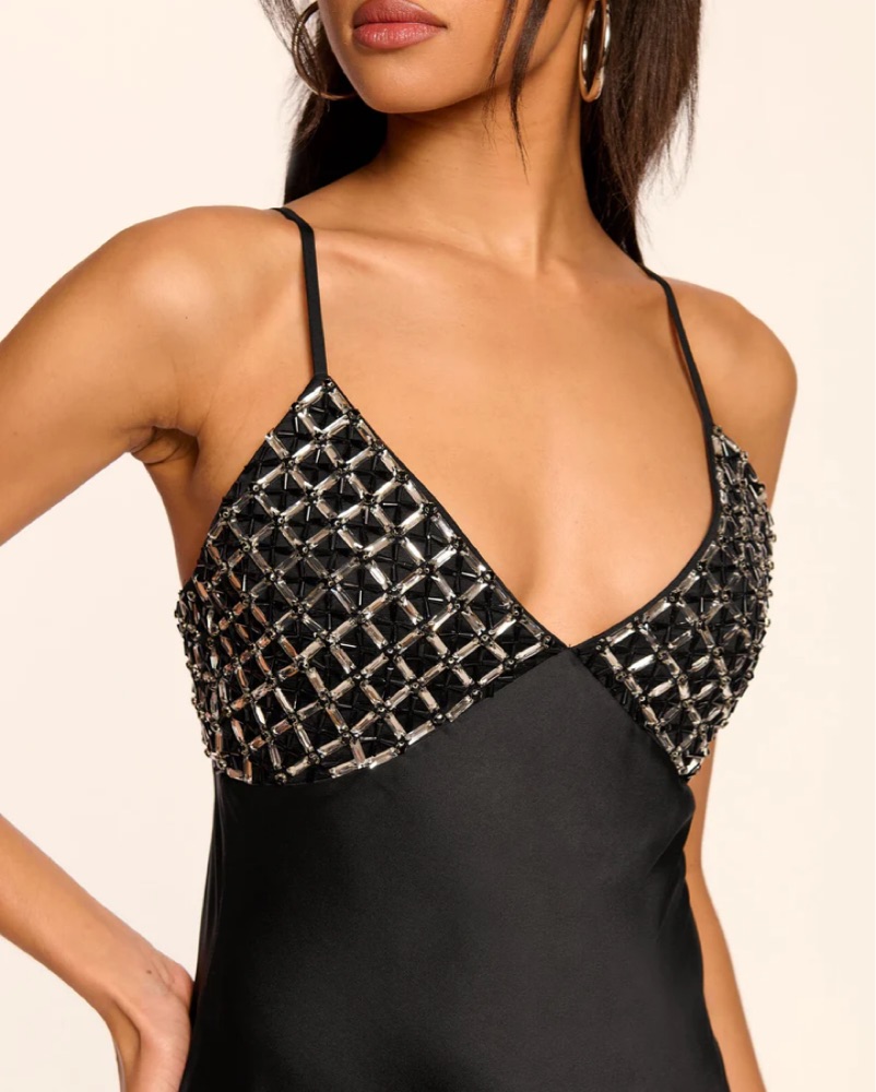 This stunning black dress features a sleek silhouette and a stunning sequin bodice that catches the light beautifully. Perfect for a formal event or special occasion.