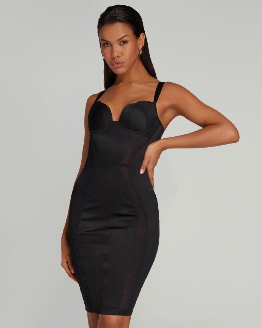 Bodycon midi with bustier cups. Says UK 10 but fits like a small. Pretty stretchy.